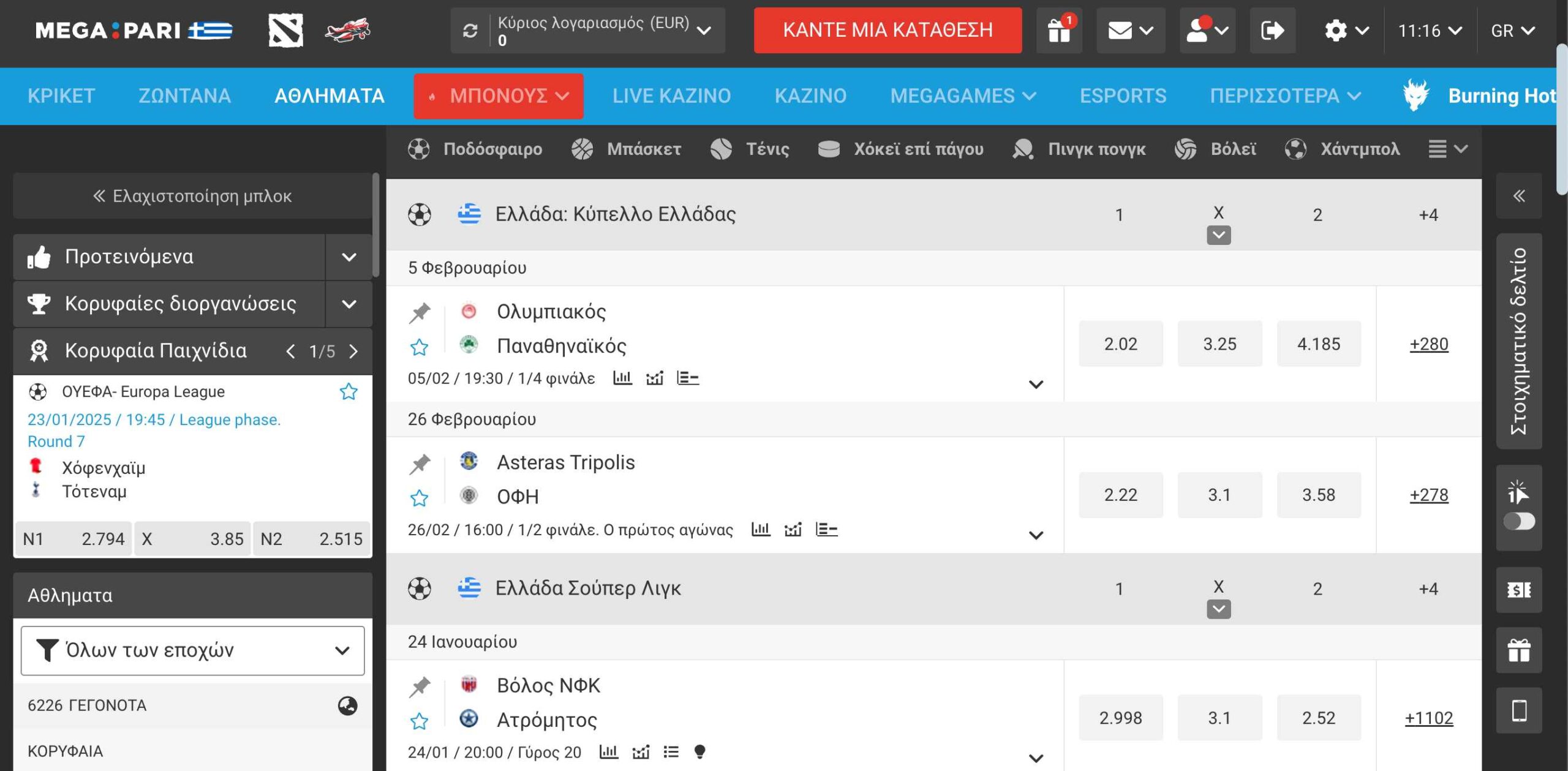 Δε χρειάζεται να πούμε πολλά για το στοίχημα στο ποδόσφαιρο. Είναι ο βασιλιάς του στοιχήματος στην χώρα μας, όπως ακριβώς συμβαίνει και σε όλες τις ποδοσφαιρικές χώρες.