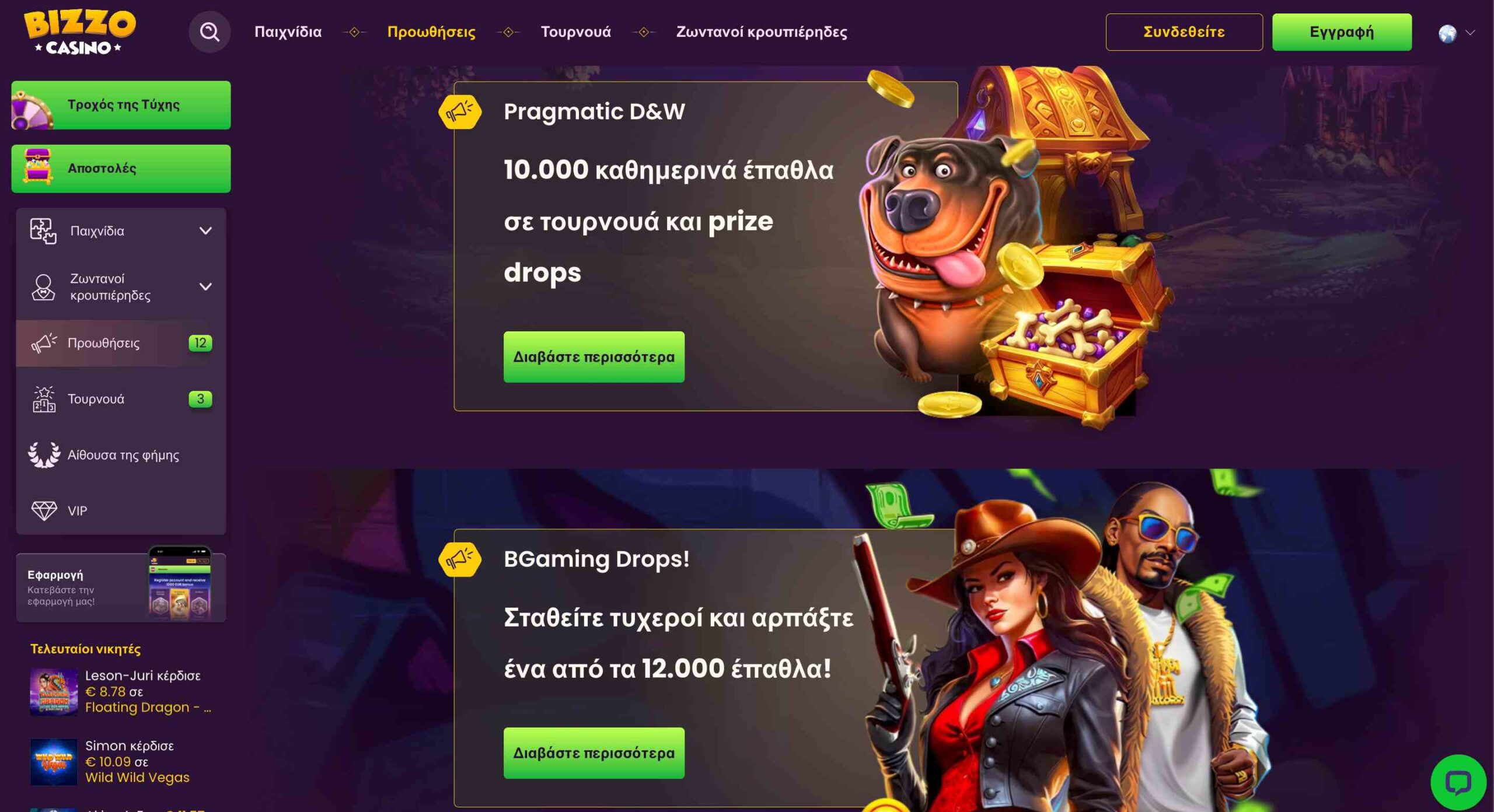Στο Bizzo Casino έχετε τη δυνατότητα να παίξετε σε κορυφαίους κουλοχέρηδες και να δοκιμάσετε την τύχη σας σε αυτά τα μοναδικά και συναρπαστικά prize drops.