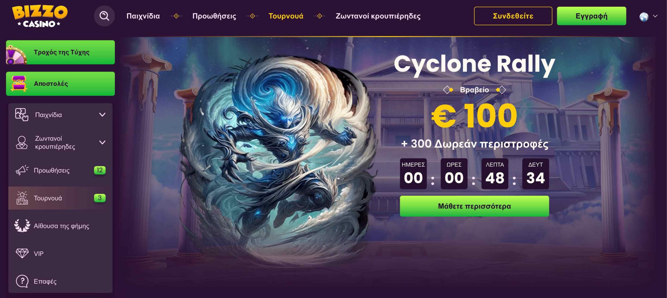 Κάθε περίοδο υπάρχουν ενεργά τουρνουά και διαγωνισμοί στο Bizzo Casino και εσείς το μόνο που έχετε να κάνετε είναι να επιλέξετε ένα event και να λάβετε μέρος. Από κει και πέρα, έχετε πρόσβαση σε χρηματικά έπαθλα και διεκδικείτε μεγάλα κέρδη!
