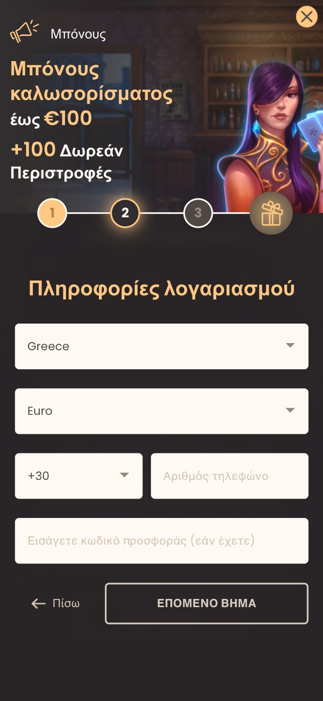 To μπόνους εγγραφής περιλαμβάνει δύο διαδοχικά μπόνους: το μπόνους πρώτης κατάθεσης και το μπόνους δεύτερης κατάθεσης.