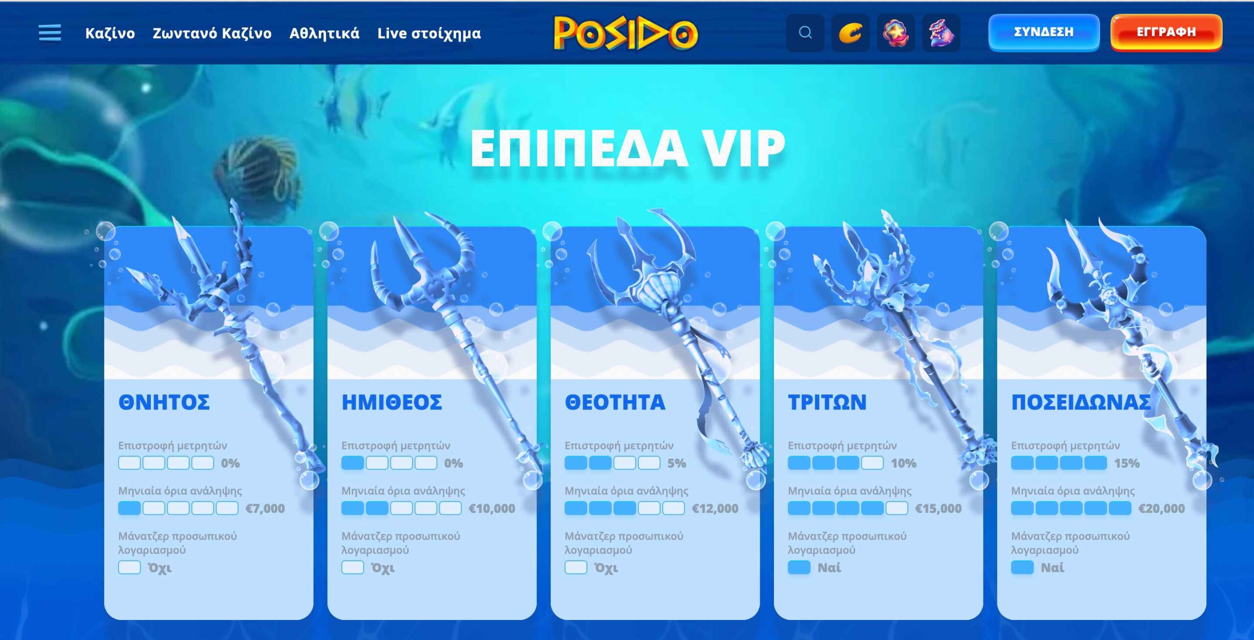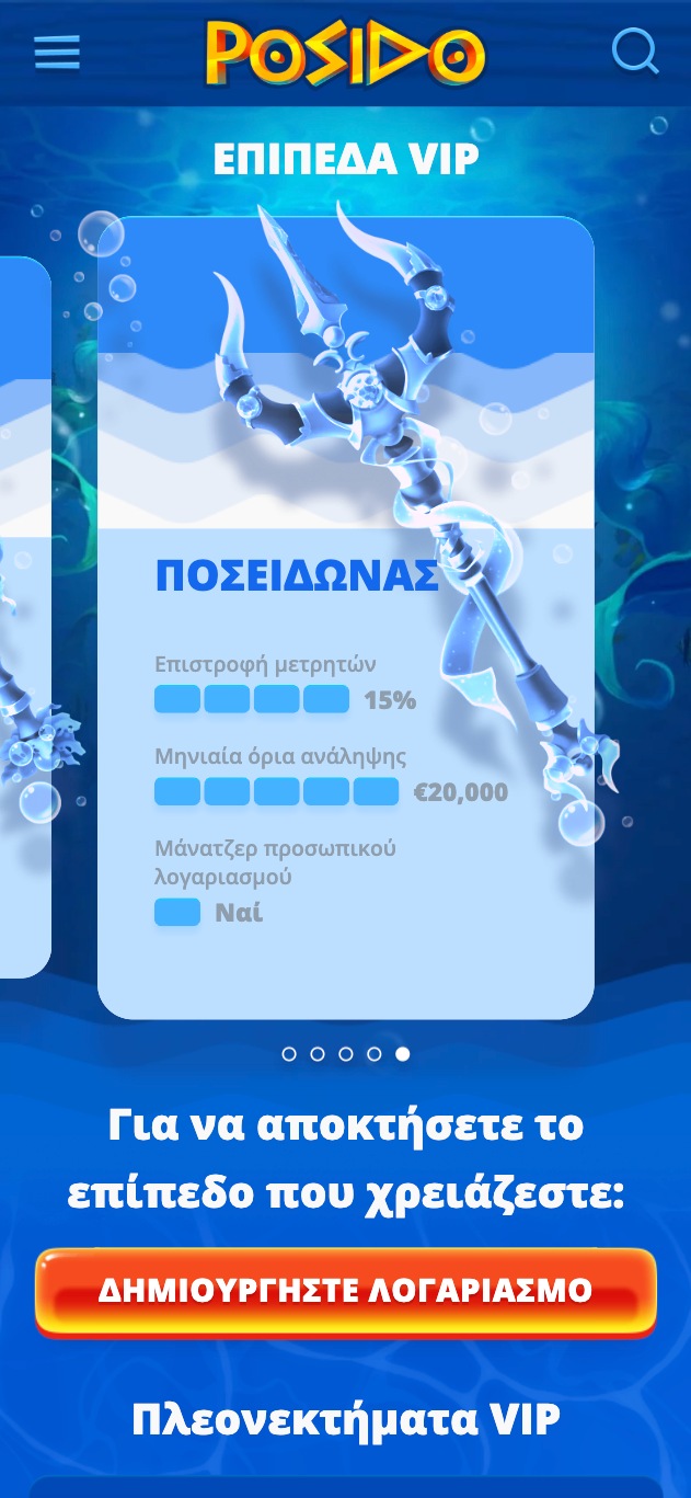| VIP 5: Ποσειδώνας | 🎁 15%/3.000€ |