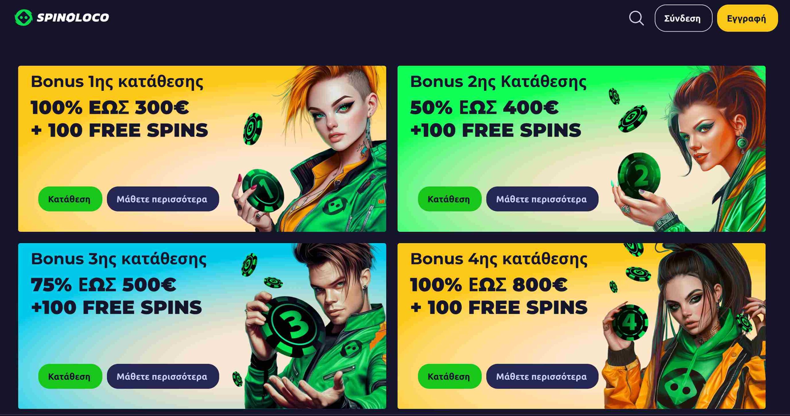 Το Spinoloco έχει ήδη κάνει μεγάλη αίσθηση στον κόσμο των διαδικτυακών καζίνο στην Ελλάδα και αυτό σε μεγάλο βαθμό οφείλεται και στο κομμάτι των προσφορών και των μπόνους, αφού μιλάμε για μια από τις πλατφόρμες με τις πιο εντυπωσιακές προωθητικές ενέργειες!