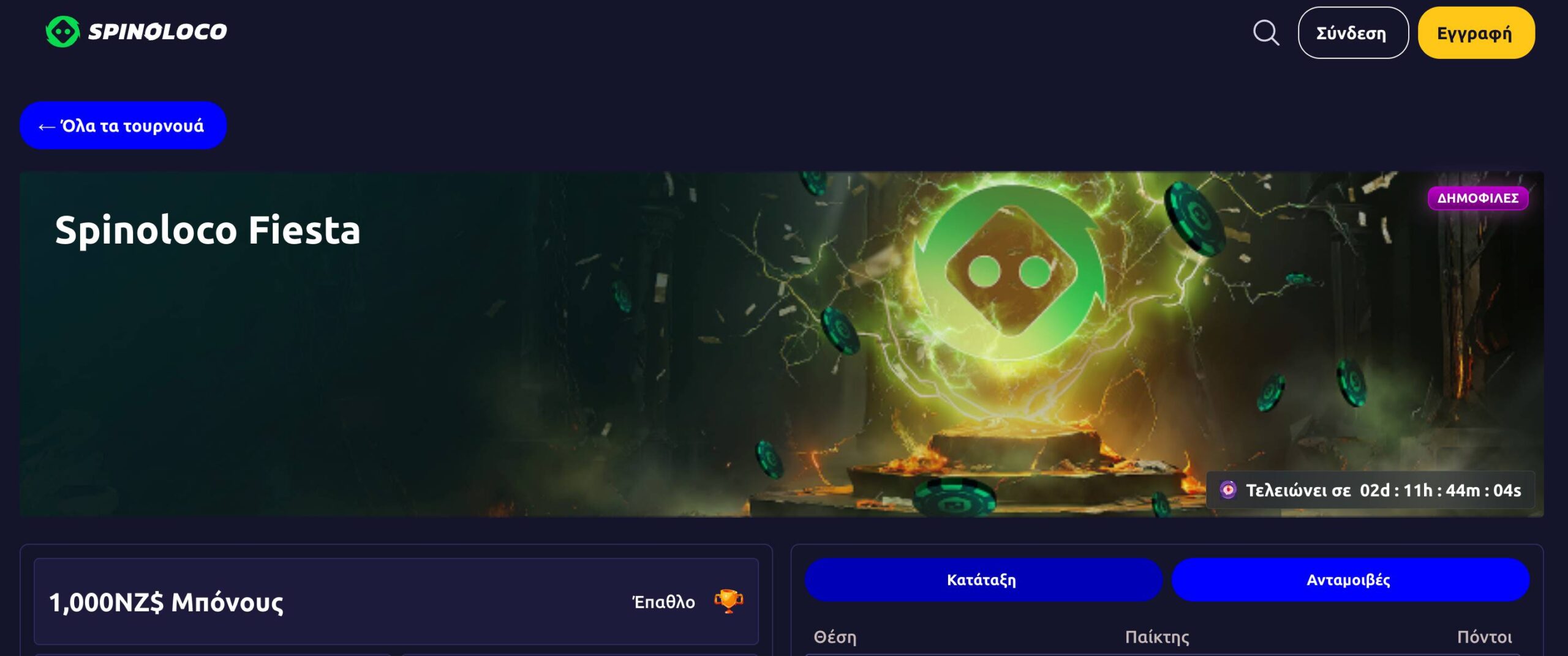 Tα Τουρνουά στο καζίνο Spinoloco είναι ένας πολύ ενδιαφέρον τρόπος να διασκεδάσετε αλλά και να κερδίσετε μοναδικά έπαθλα, πλούσια δώρα και συναρπαστικά βραβεία.