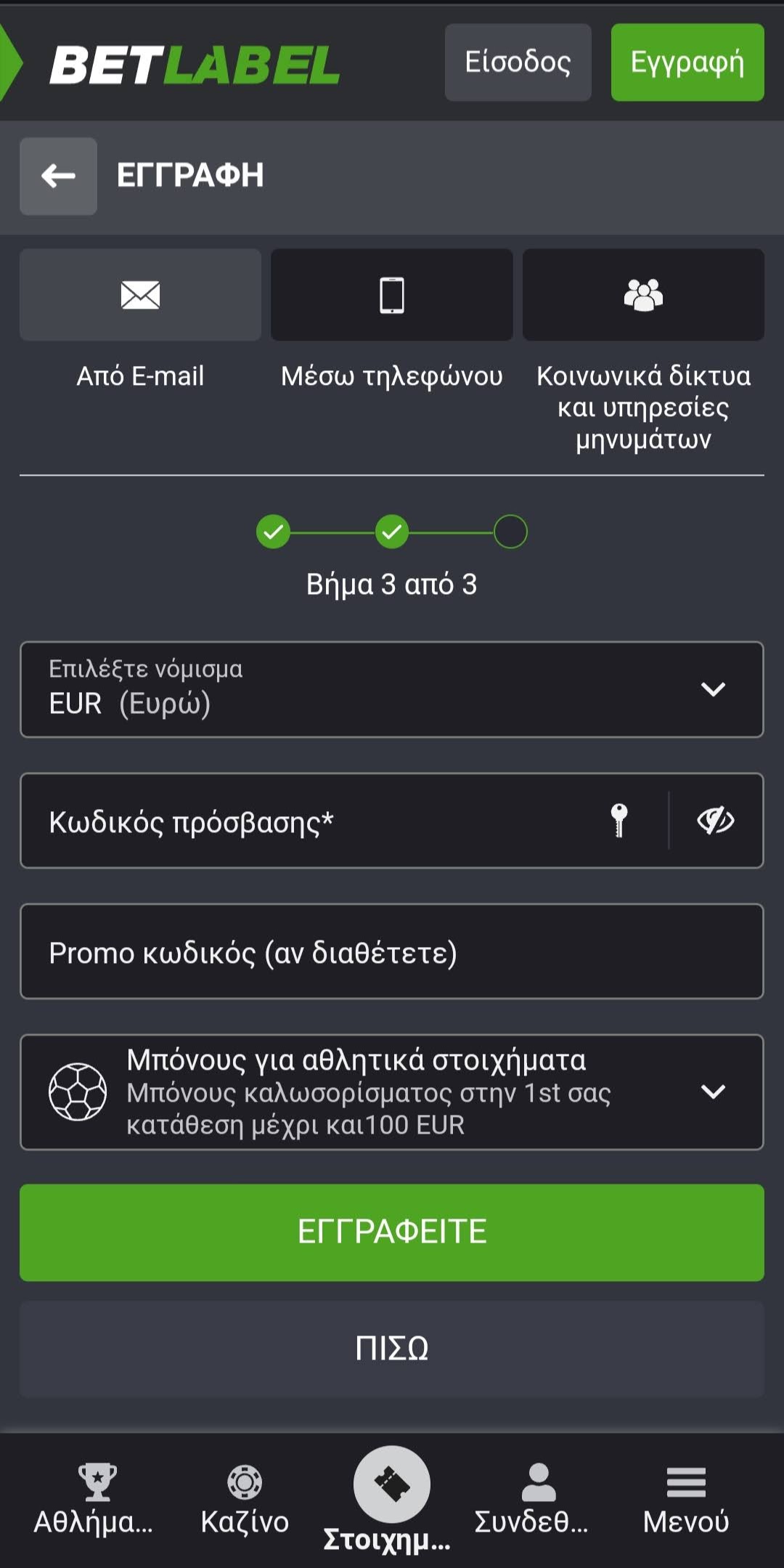 - Να κάνετε μια κατάθεση αφού ολοκληρώσετε την εγγραφή σας και επαληθεύσετε τον αριθμό του κινητού σας