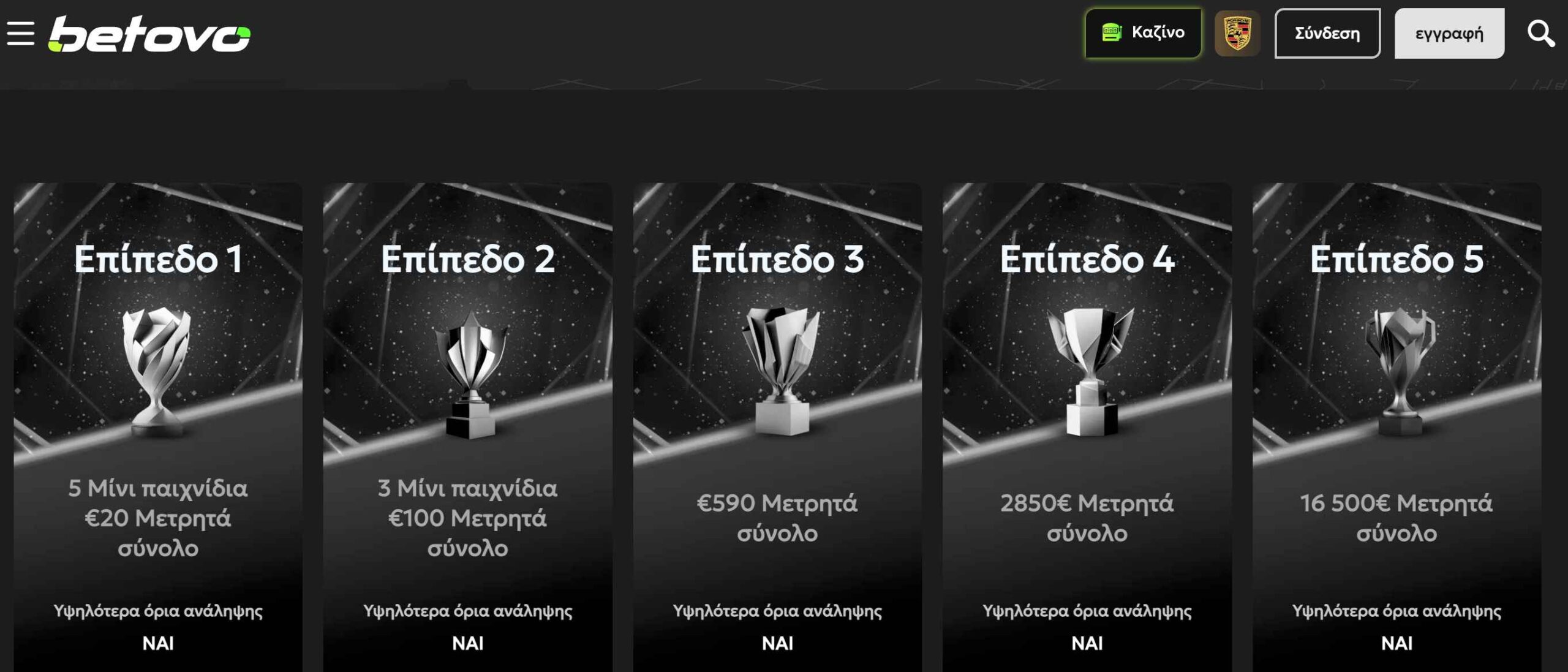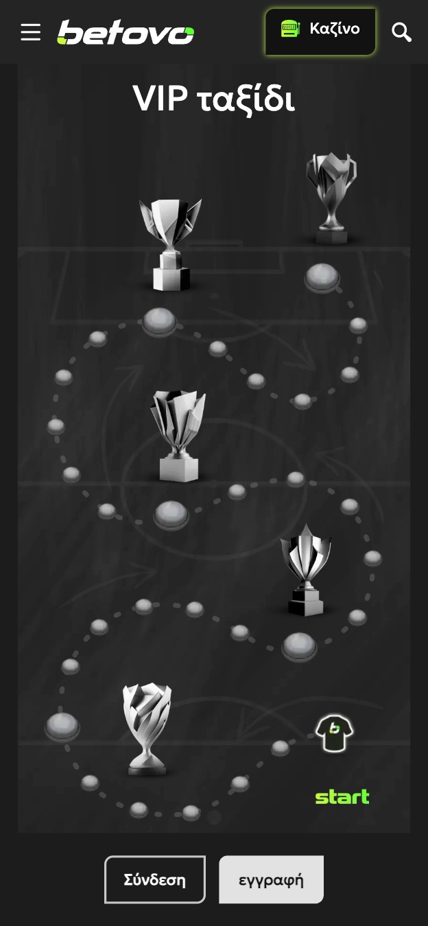 Ένα πρόγραμμα ανταμοιβής δε θα μπορούσε να λείπει από την Betovo. To VIP ταξίδι – όπως το αναφέρει η πλατφόρμα – είναι ουσιαστικά μια διαδρομή με δώρα και ανταμοιβές που παίρνετε καθώς συγκεντρώνετε πόντους. Τους πόντους τους μαζεύετε παίζοντας στοίχημα.