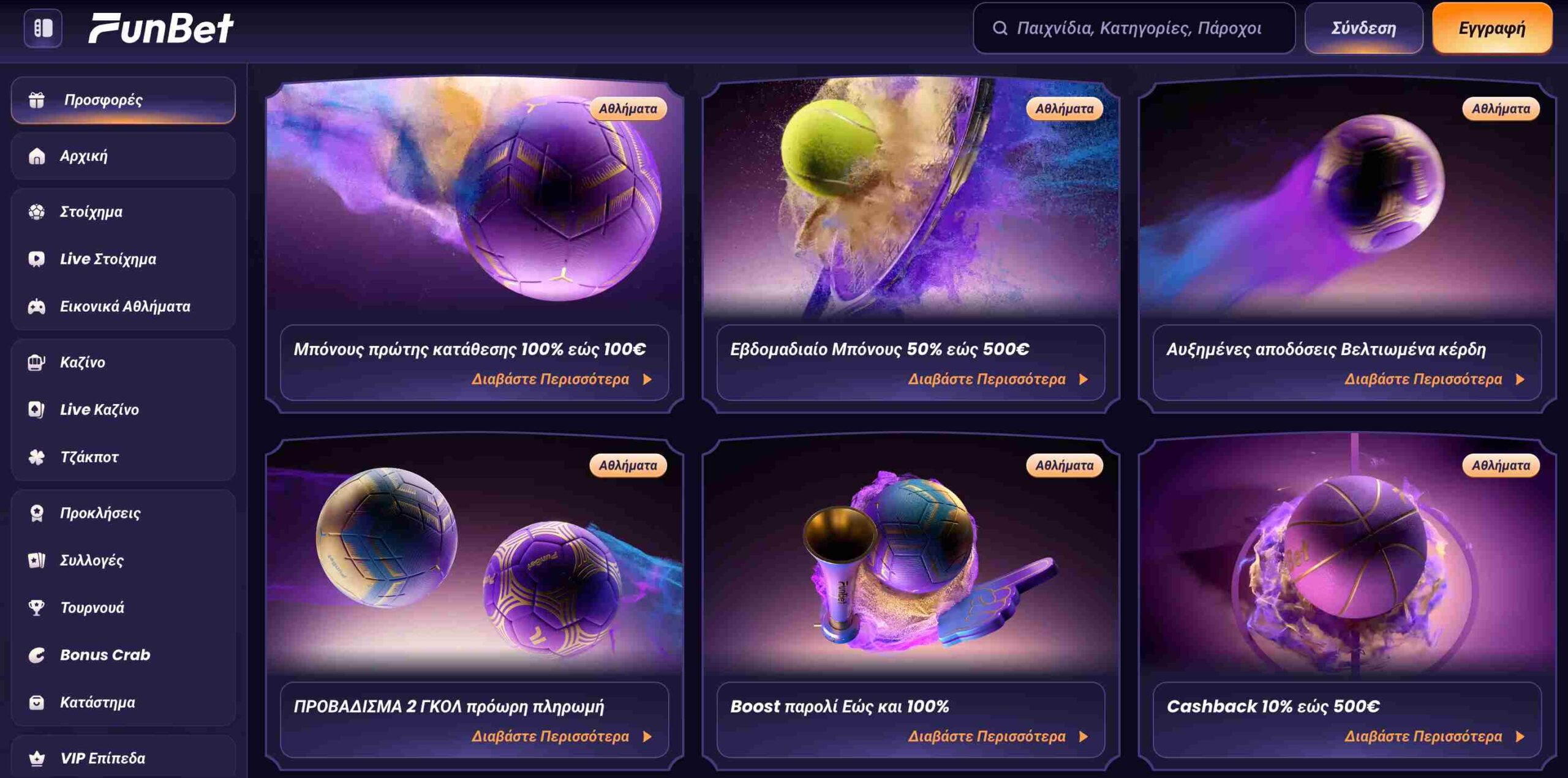 H FunBet είναι μια καινούργια στοιχηματική πλατφόρμα που υπόσχεται ατέλειωτη διασκέδαση, μοναδικές συγκινήσεις και συναρπαστικές στοιχηματικές στιγμές! Αν θέλετε να μάθετε όλες τις προσφορές και τα μπόνους που μπορείτε να διεκδικήσετε στην πλατφόρμα FunBet, είστε στο σωστό μέρος! Ας ξεκινήσουμε…
