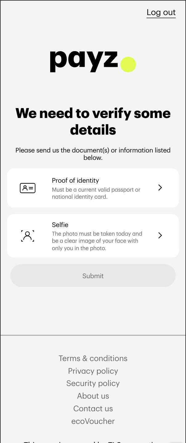 - Στη συνέχεια κάνετε ταυτοποίηση των στοιχείων σας, στέλνοντας αντίγραφο της ταυτότητας ή του διαβατηρίου σας και ανεβάζοντας μια φωτογραφία σας.