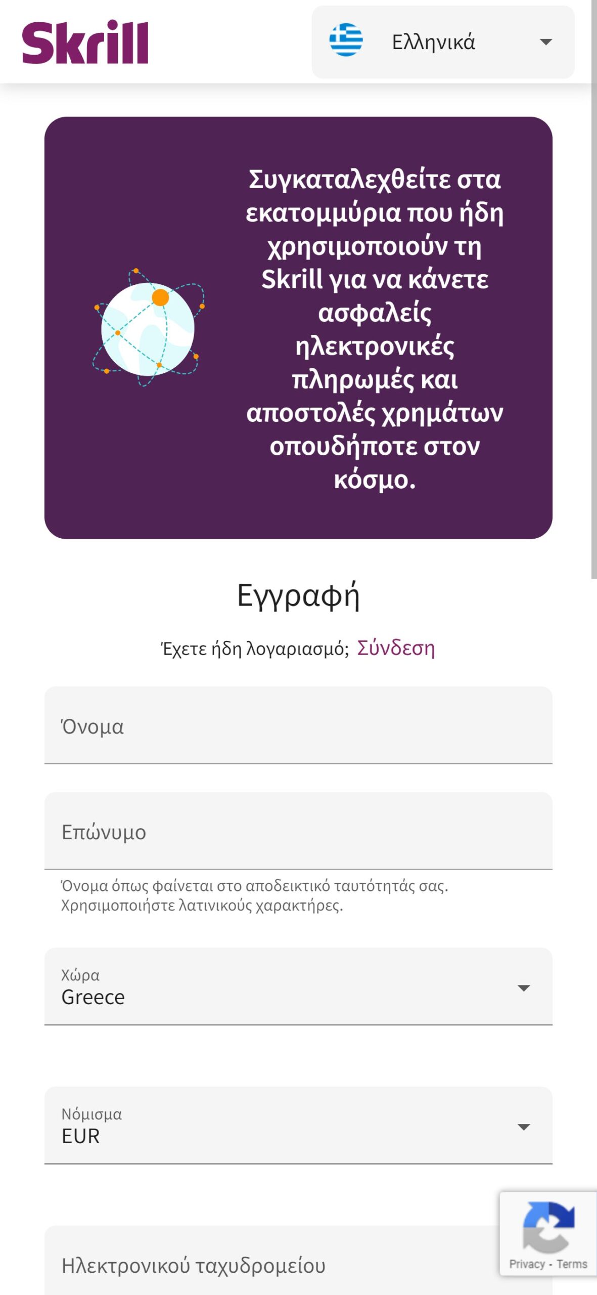 - Δημουργείτε τον λογαριασμό σας Skrill!