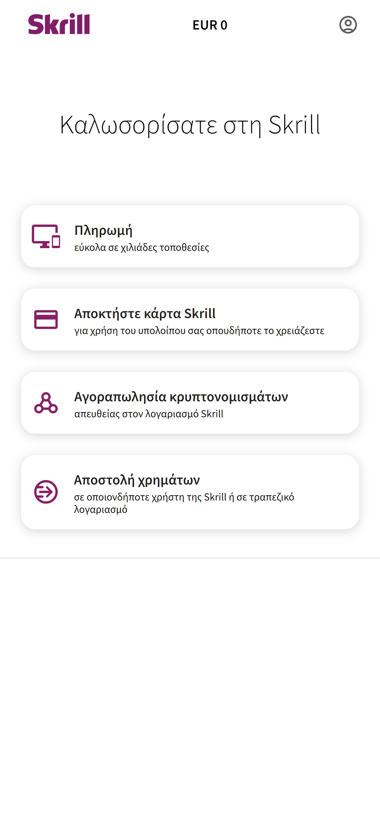 - Skrill 1-Tap® για άμεσες πληρωμές