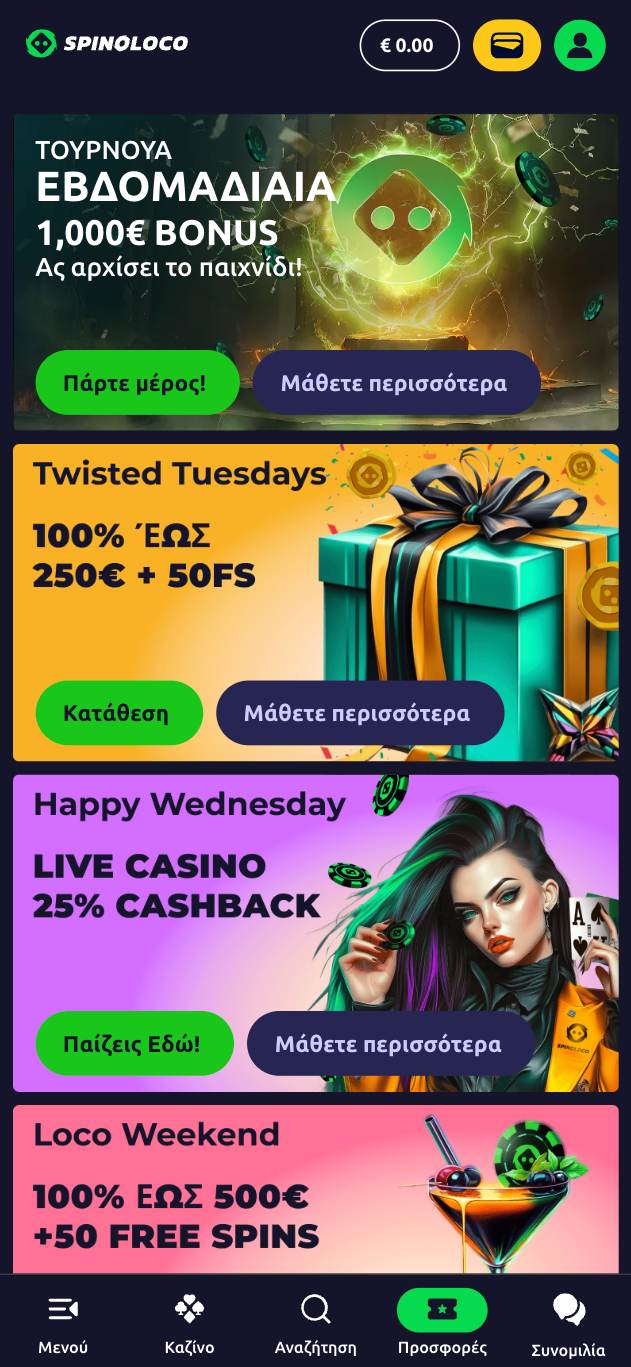 | 13 | Spinoloco | 4.3/5 | Πακέτο καλωσορίσματος έως 2.000€ + 400 FREE SPINS | Διαβάστε την αξιολόγηση |