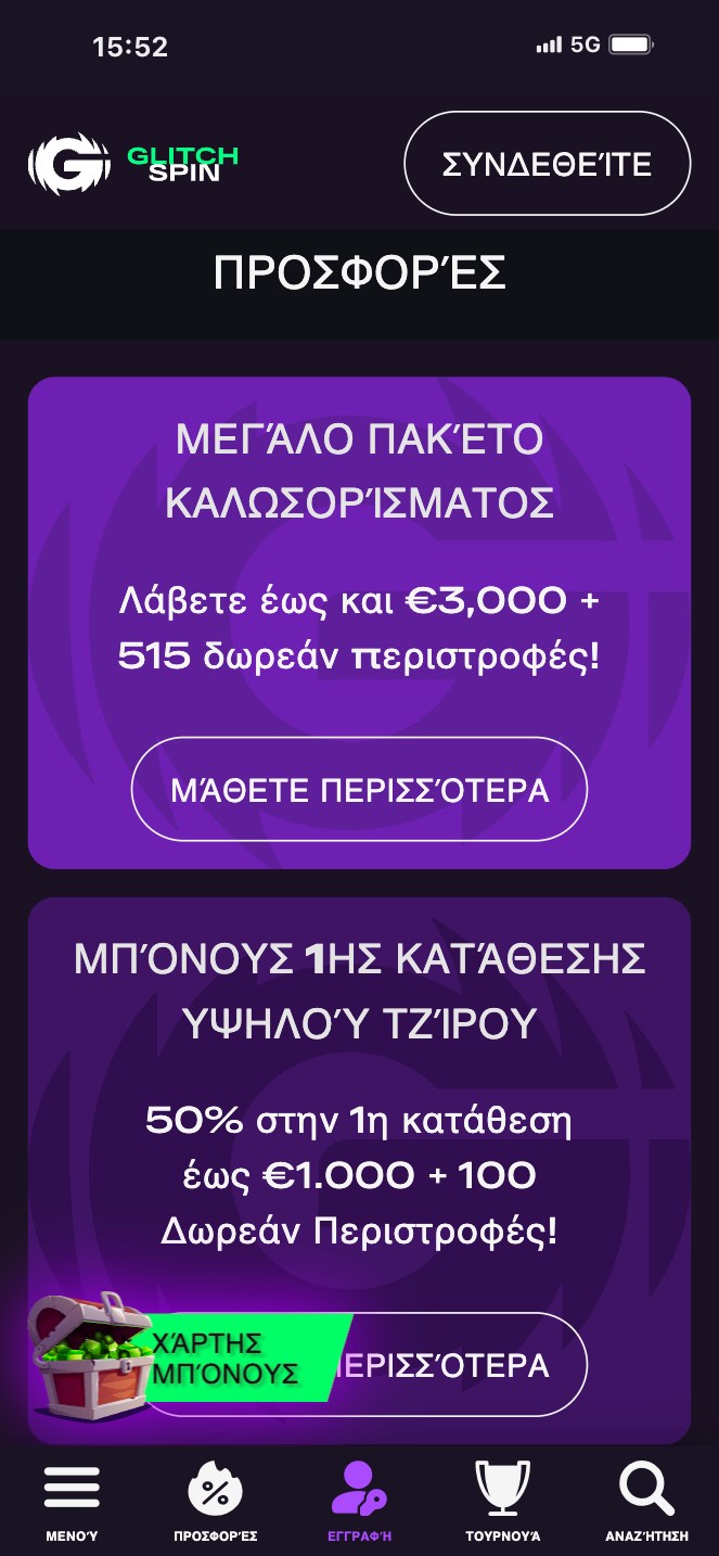| 🎁 Μπόνους εγγραφής | Μπόνους καλωσορίσματος 100% έως 1.500€ + 150 δωρεάν περιστροφές |