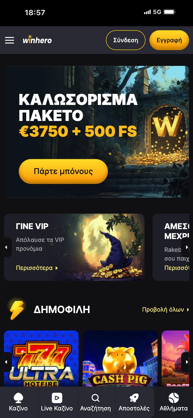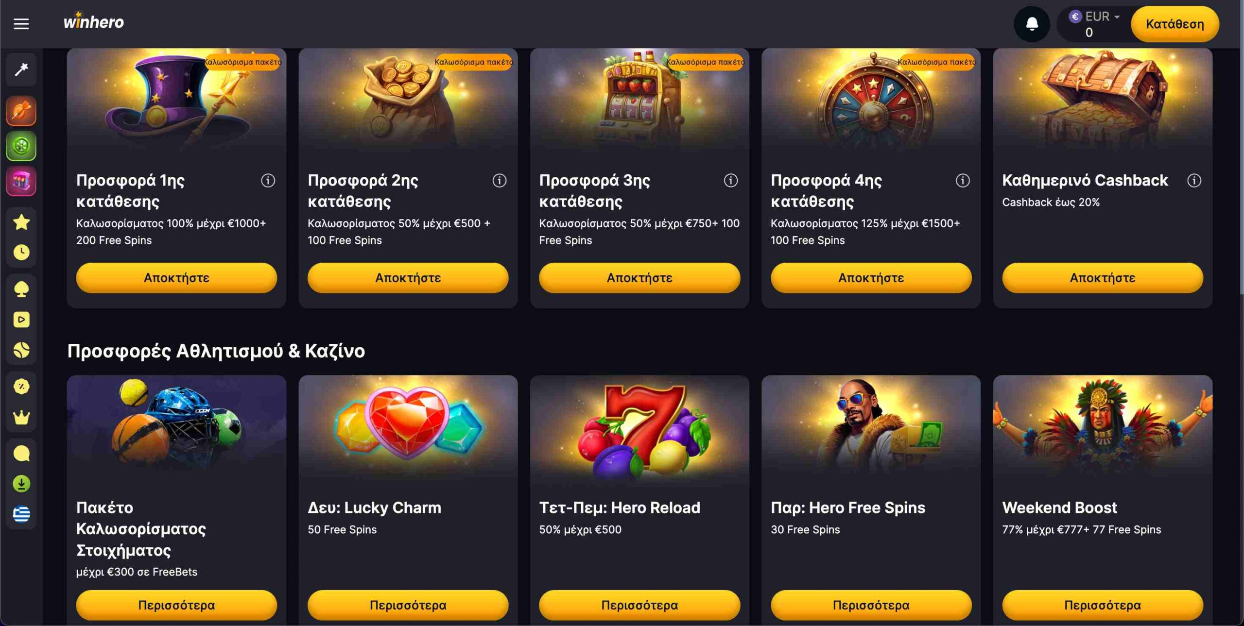 | 33 | Winhero | 4.2/5 | Πακέτο καλωσορίσματος 3.750€ και 500 free spins | Διαβάστε την αξιολόγηση |