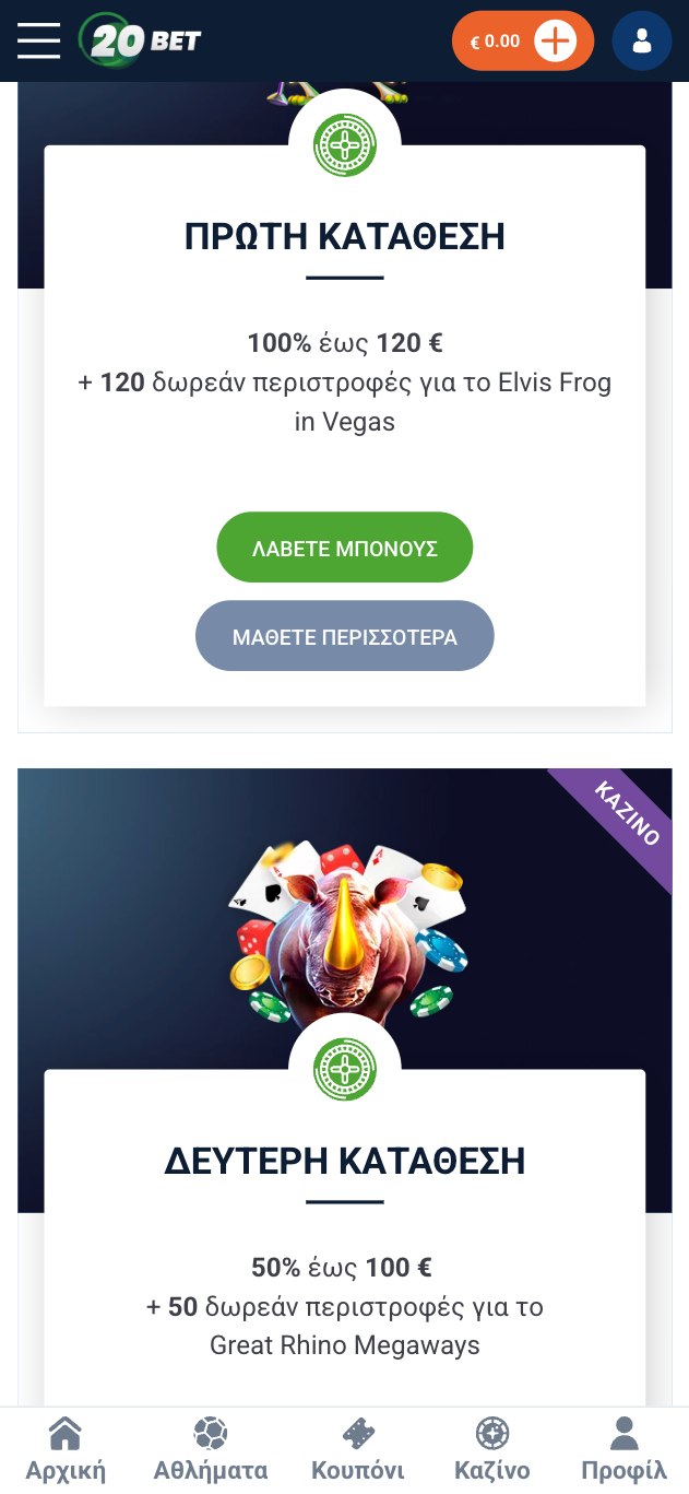 Στο 20Bet casino το παιχνίδι από το κινητό είναι αρκετά άνετο και θυμίζει πολύ την desktop εμπειρία. Ναι μεν υπάρχει ο μοντέρνος σχεδιασμός που επιτρέπει στην σελίδα να προσαρμόζεται σε κάθε μέγεθος οθόνης και συσκευή όμως αναδιοργανώνεται και η διάταξη των στοιχείων ώστε η πλοήγηση και ο χειρισμός να είναι πιο εύχρηστος σε mobile. Το πλαϊνό μενού ανοίγει μόνο αν πατήσει ο χρήστης την αντίστοιχη επιλογή στο οριζόντιο μενού που από πάνω, στο κινητό, μεταφέρεται στο κάτω μέρος της οθόνης.