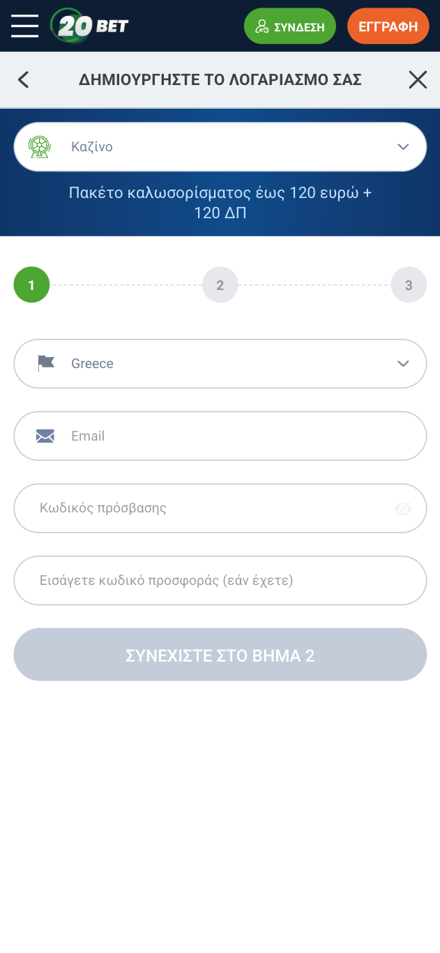 Ξεκάθαρο και απλό θα χαρακτηρίζαμε το πακέτο καλωσορίσματος του 20Bet casino όμως σε καμία περίπτωση δεν περνάει απαρατήρητο. Με την εγγραφή τους οι νέοι παίκτες, πραγματοποιώντας μία κατάθεση από 20€ και άνω, θα λάβουν μπόνους 100% έως και 120€ καθώς και 120 free spins. Όπως πάντοτε, υπάρχουν ορισμένοι όροι που συνοδεύουν την προσφορά: