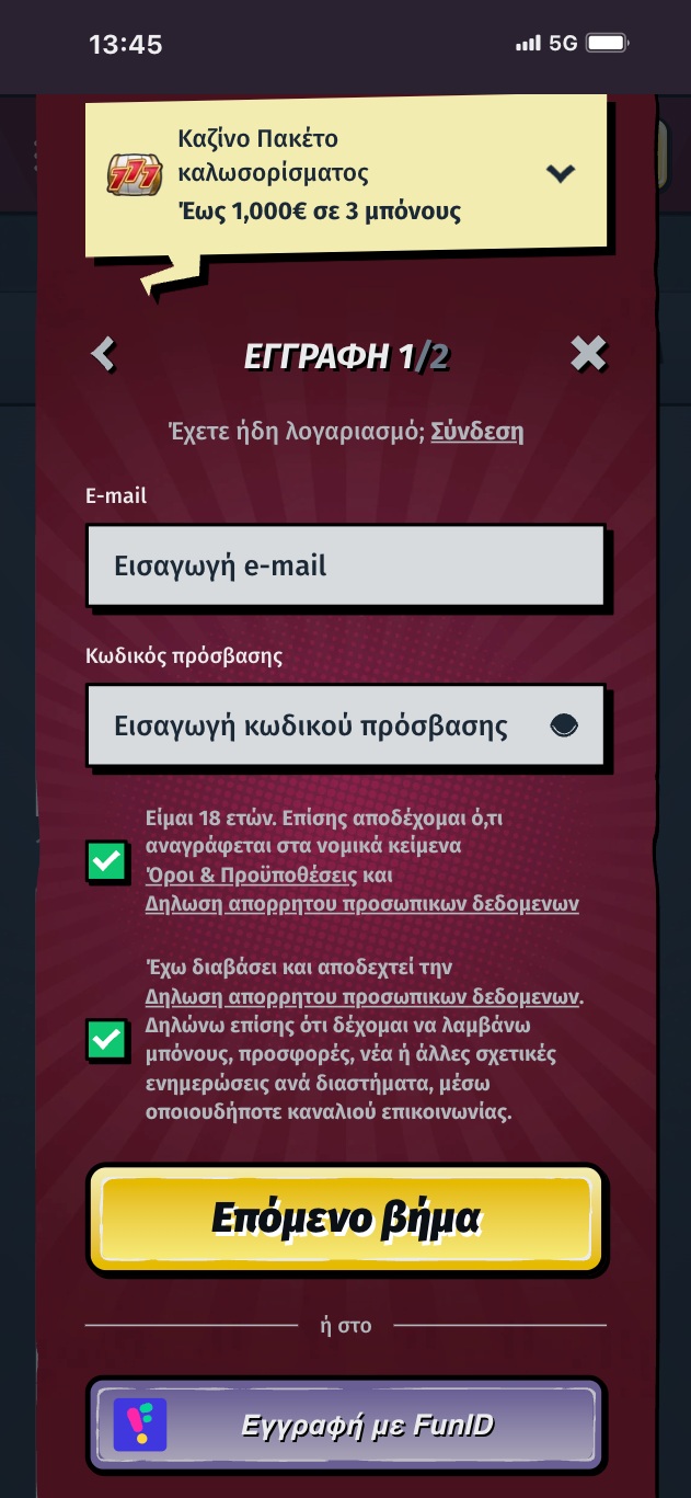 Για ακόμα πιο γρήγορη εγγραφή, μπορείτε να επιλέξετε να την κάνετε μέσω FunID, απλώς κάνοντας login στον λογαριασμό σας!