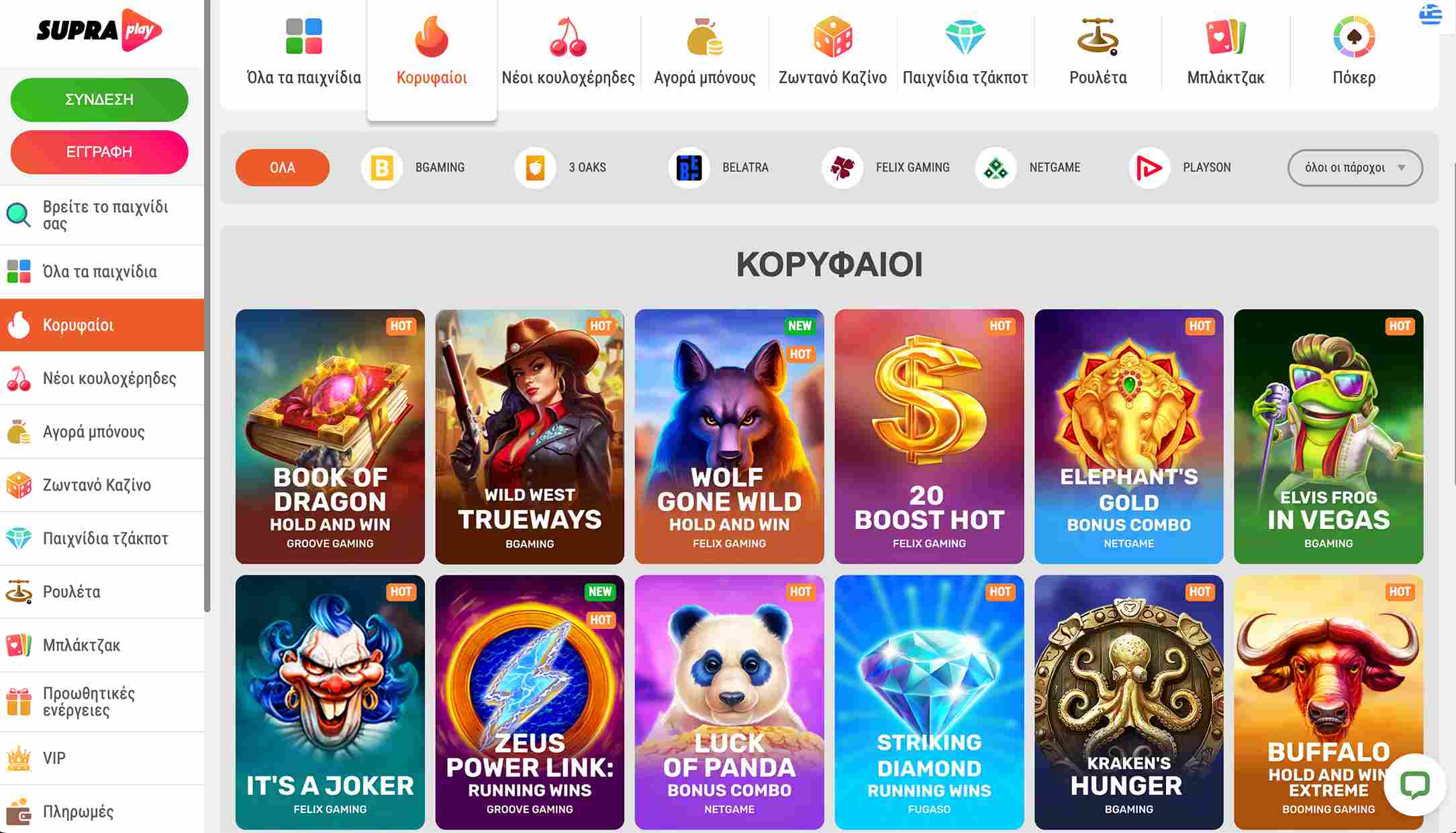 | 8 | Supraplay | 4.2/5 | Μπόνους πρώτης κατάθεσης 100% έως 250€ + 200 δωρεάν περιστροφές | Διαβάστε την αξιολόγηση |