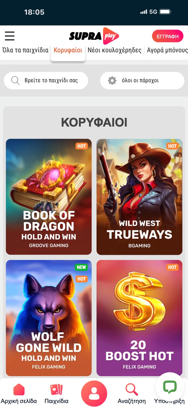 | 👨💼 Εξυπηρέτηση πελατών | Email (support@supraplay.com) Live chat 24/7 |