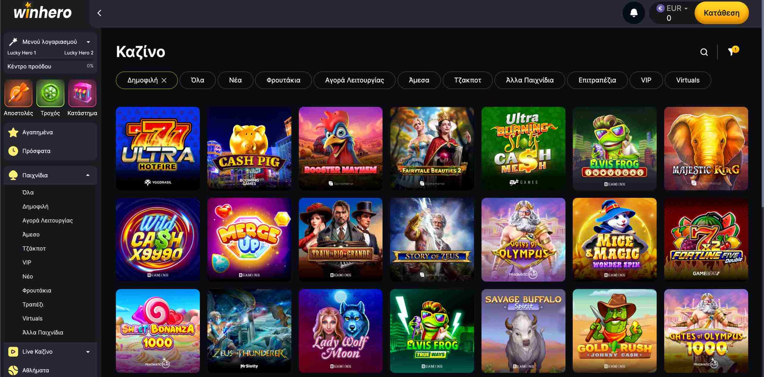 | 👨💼 Εξυπηρέτηση πελατών | Email (support@winhero.com), Live chat 24/7, Telegram |