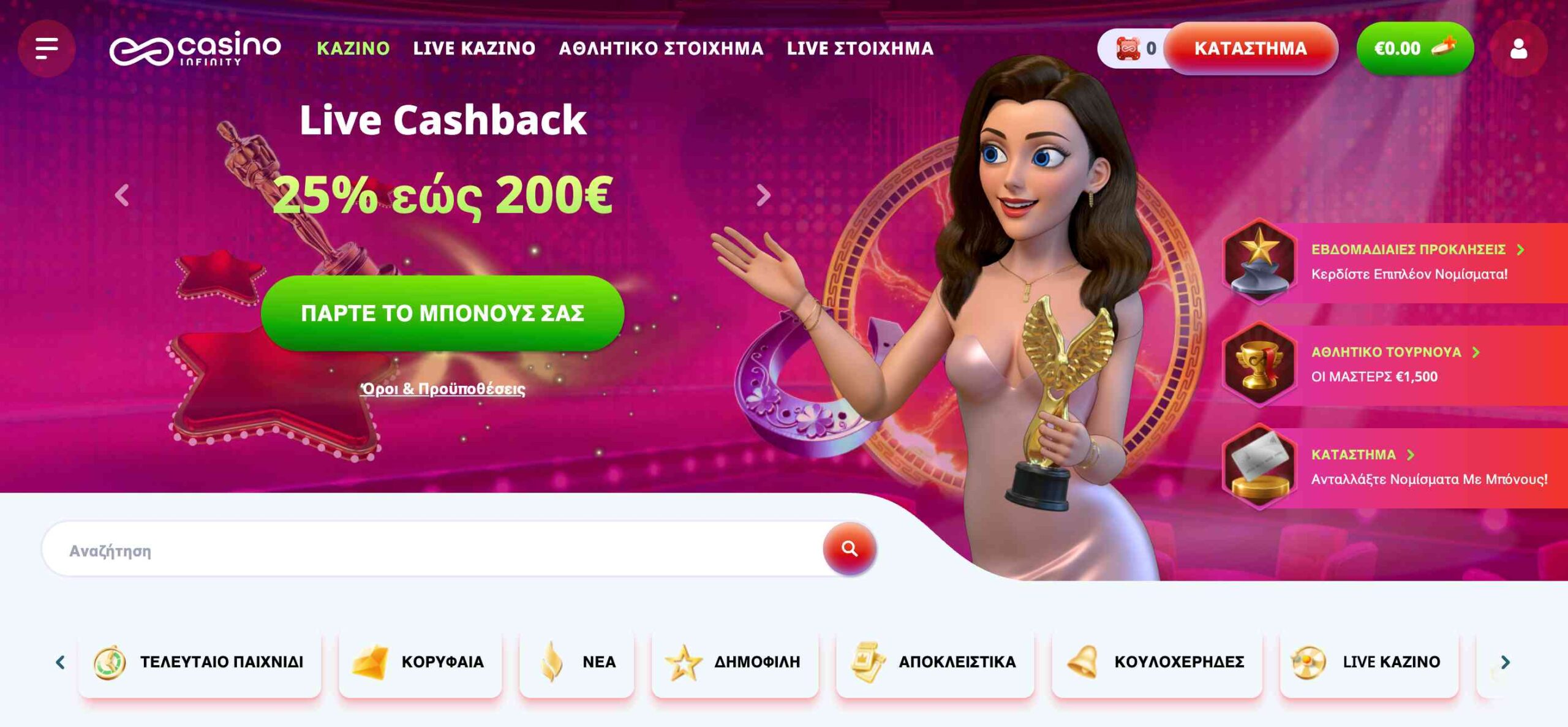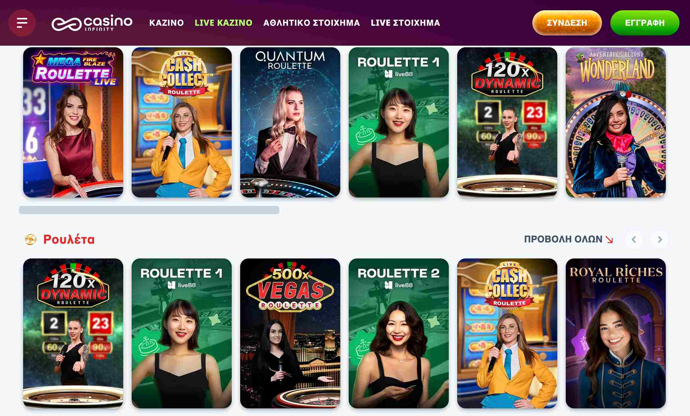 Live παιχνίδια: το καλό με τα διαδικτυακά καζίνο είναι πως μπορούν να σας μεταφέρουν στην πραγματική μαγεία του να επισκέπτεστε ένα κανονικό καζίνο, μέσα από τα live streamed παιχνίδια! Όλα τα επιτραπέζια αλλά και πολλά άλλα τηλεπαιχνίδια και instant games θα τα βρείτε σε μεγάλη αφθονία στην πλατφόρμα του Casino Infinity