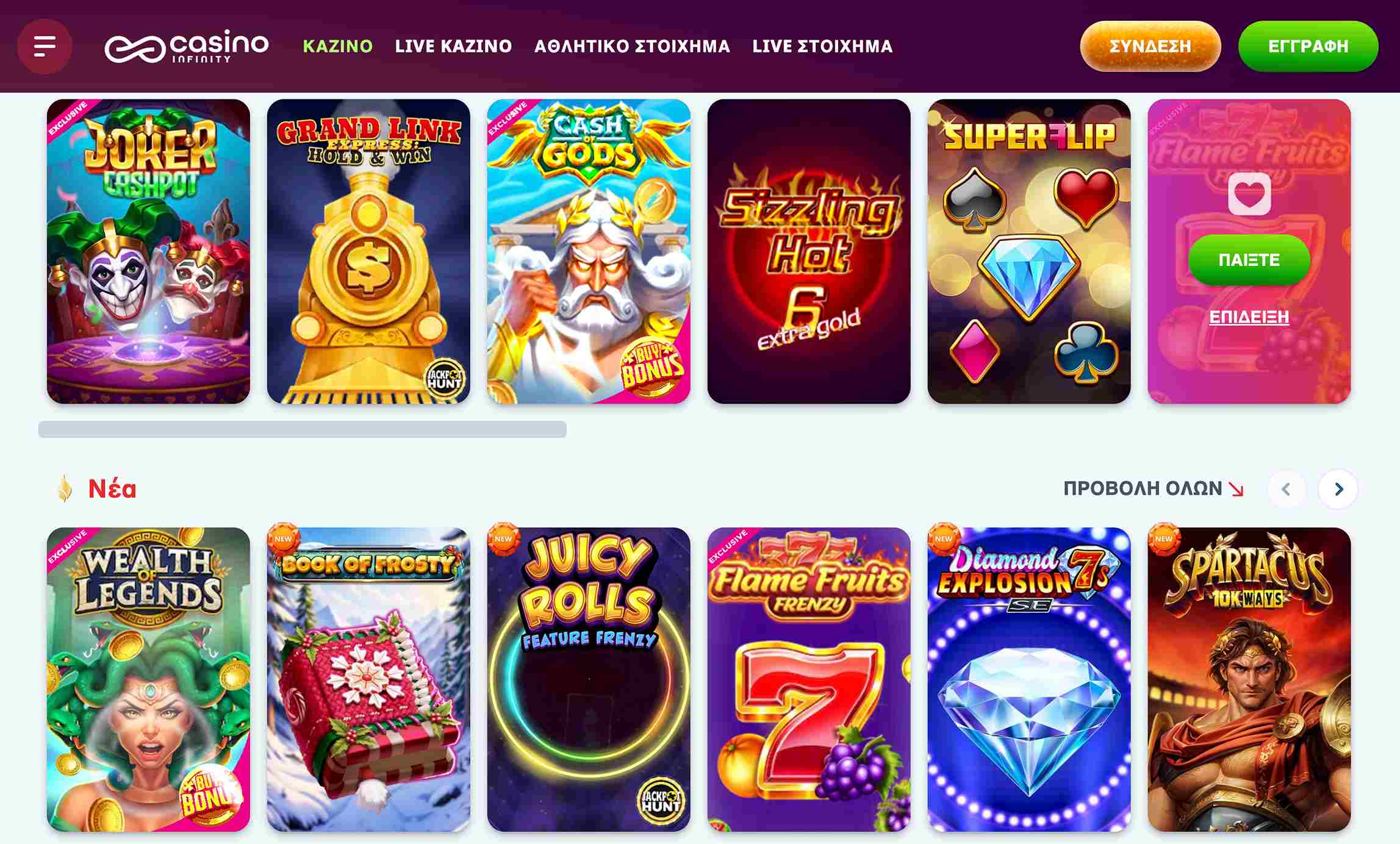 Το Casino Infinity άνοιξε τις πόρτες του στους διαδικτυακούς παίκτες το 2023 και από τότε έχει καταφέρει να ανέβει πολύ ψηλά στις προτιμήσεις τους. Όλα όσα θέλετε να μάθετε για το καζίνο που κάνει τη διαφορά και φαίνεται να κερδίζει όλο και περισσότερους θαυμαστές, θα τα βρείτε στην πληρέστερη παρουσίαση που ακολουθεί.