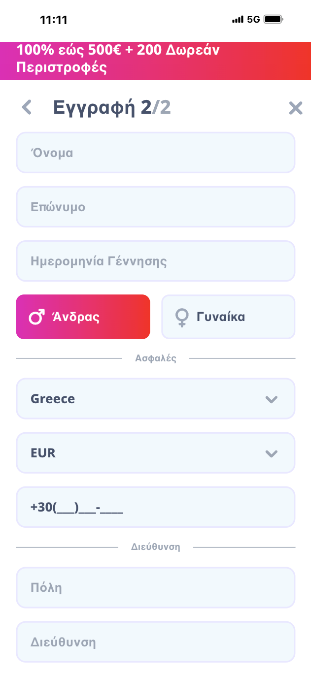 Bήμα 3: Εισάγετε το όνομα, το επώνυμο, την ημερομηνία γέννησης, το φύλο και τη χώρα διαμονής σας. Συμπληρώστε το τηλέφωνο και επιλέξτε το νόμισμα. Κάντε κλικ στο κουμπί «Δημιουργία λογαριασμού» για να ολοκληρώσετε τη διαδικασία και να ξεκινήσετε να παίζετε.