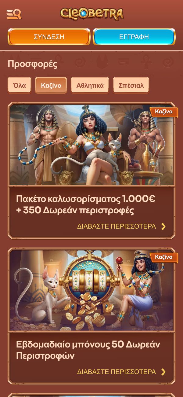 Δεν είναι μυστικό πως η πλειοψηφία των παικτών προτιμά να παίζει στα online casino από το κινητό. Όσοι από εσάς το προτιμούν τότε θα χαρείτε ιδιαίτερα όταν αντικρίσετε για πρώτη φορά την mobile έκδοση του Cleobetra καζίνο. Η πλατφόρμα όχι μόνο λειτουργεί άψογα αλλά οι χρόνοι φόρτωσης είναι πολλές φορές γρηγορότεροι σε σύγκριση με την desktop έκδοση.
