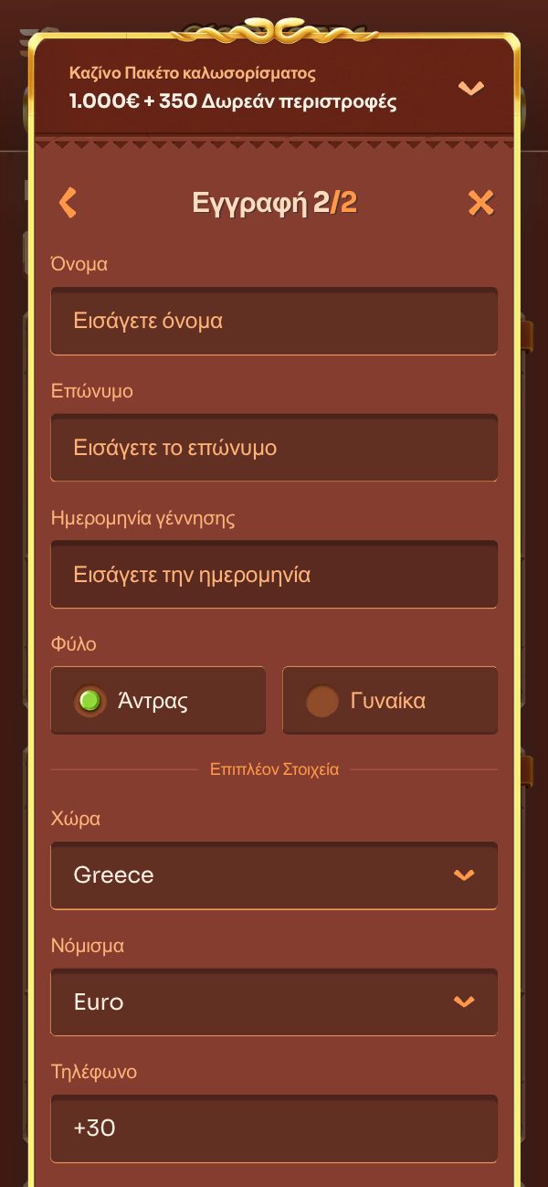 Στο αμέσως επόμενο στάδιο θα συμπληρώσετε το πλήρες ονοματεπώνυμο, διεύθυνση κατοικίας και τον πραγματικό, συνιστούμε, αριθμό τηλεφώνου σας. Σε τελικό στάδιο θα ερωτηθείτε αν θέλετε να προχωρήσετε άμεσα στην πρώτη κατάθεση όμως αυτό μπορείτε να το αφήσετε και για αργότερα.