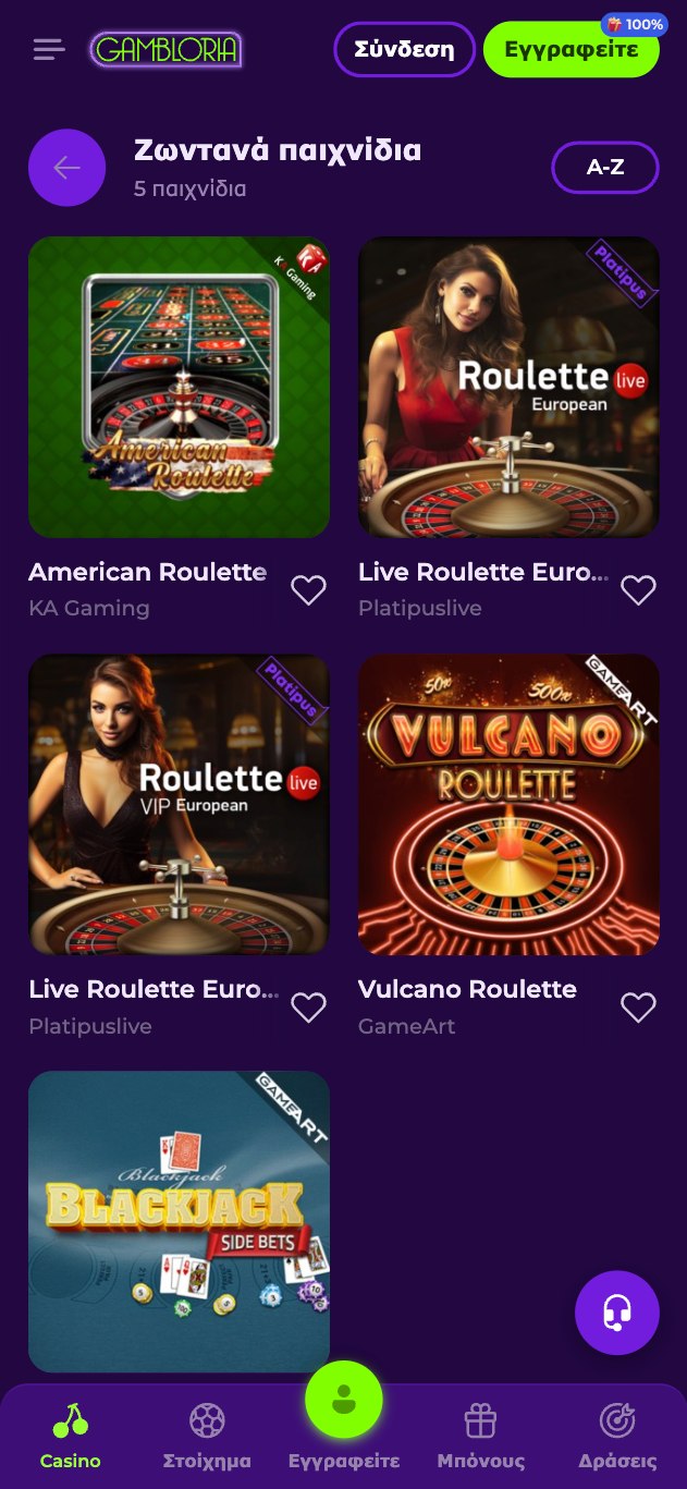 To live casino του Gambloria θέλει ακόμα λίγη δουλίτσα, από την άποψη ότι αυτή τη στιγμή για τους παίκτες από την Ελλάδα, δεν υπάρχουν πολλά διαθέσιμα live τραπέζια. Για την ακρίβεια, για την ώρα, μπορείτε να “καθίσετε” σε ένα από τα πέντε που προσφέρονται – τέσσερα τραπέζια ρουλέτας και ένα τραπέζι μπλακ τζακ. Γενικά δηλαδή, στο θέμα του ζωντανού καζίνο μπορούμε να πούμε πως η πλατφόρμα υστερεί σε σχέση με τον ανταγωνισμό.