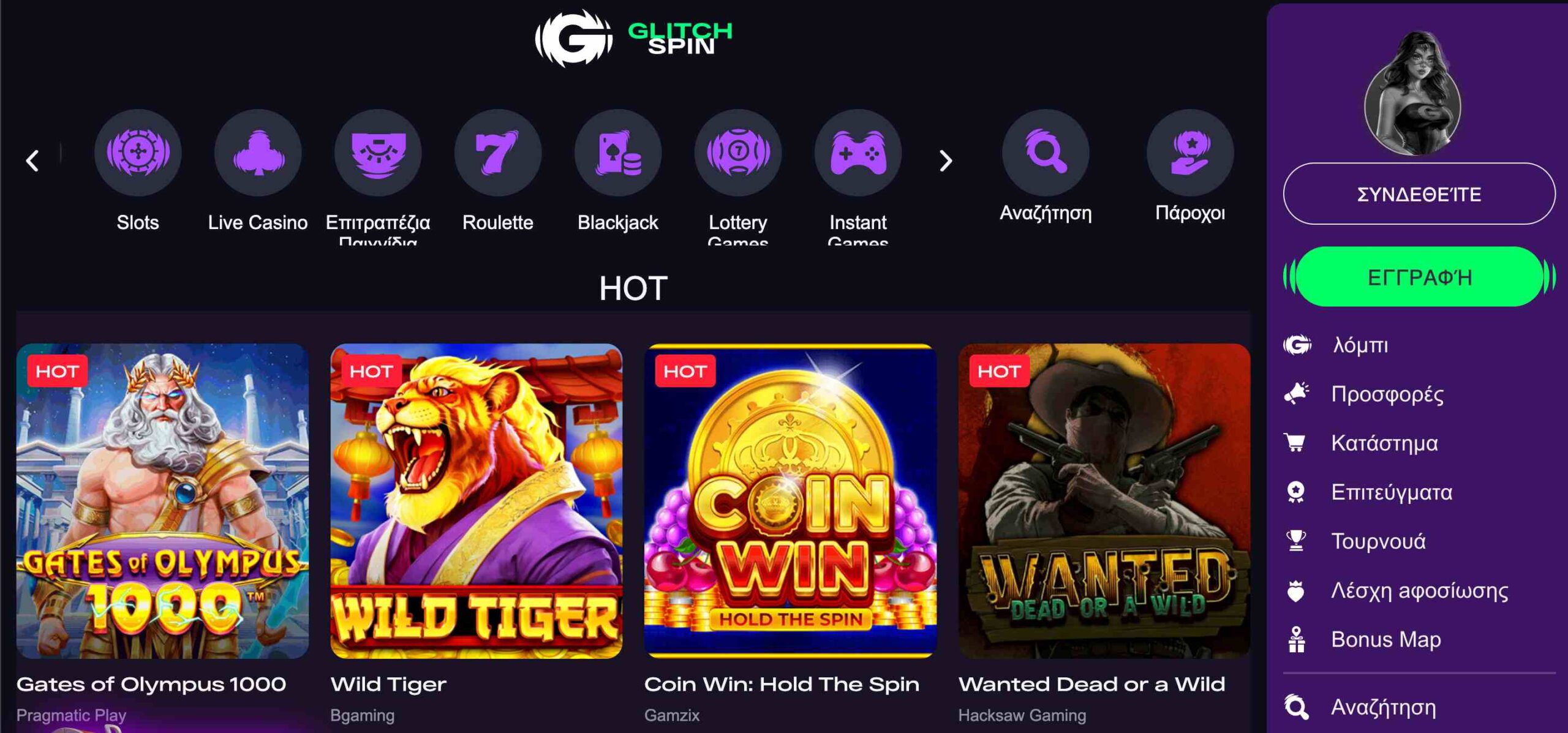 💥 Instant win: τα παιχνίδια άμεσης νίκης με τα δημοφιλή Plinko, Bingo, crash παιχνίδια, scratch και Kino υπάρχουν όλα στο Glitchspin και μάλιστα με πάρα πολλές και διαφορετικές επιλογές για τους παίκτες. Και εδώ μπορείτε να δοκιμάσετε την έκδοση demo προτού επιλέξετε σε ποιο θα παίξετε με πραγματικά χρήματα.