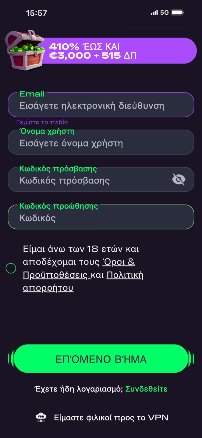Μπορείτε να κάνετε εγγραφή στο Glitchspin Casino πάρα πολύ γρήγορα και πάρα πολύ εύκολα. Για να ανοίξετε λογαριασμό στην πλατφόρμα, θέλετε μόνο δύο βήματα: