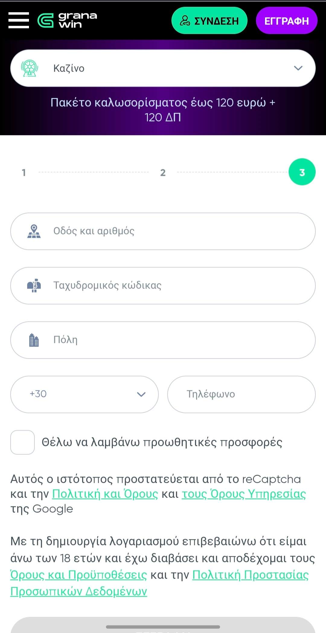 | 👨💼 Εξυπηρέτηση πελατών | Email (support@granawin.com), Live chat 24/7 |