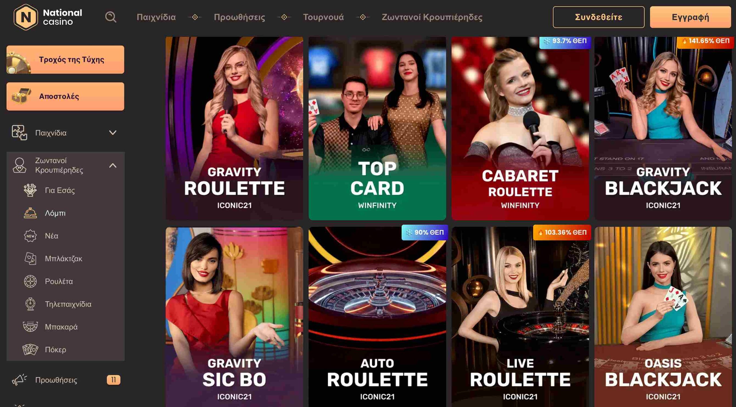 | 🤵 Live τραπέζια | 300+ |