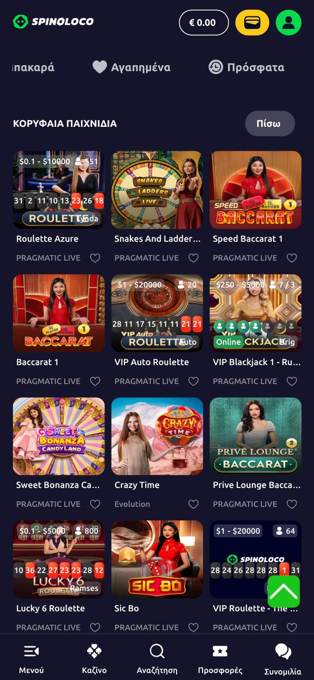 | 🌟 Πάροχοι | Pragmatic Live, Evolution, Ezugi, Creedroomz, BetGames, VivoGaming |