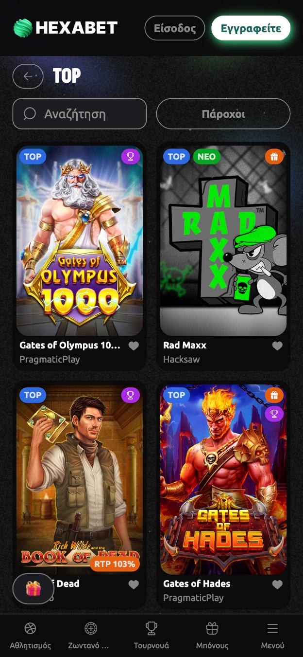 | 56 | Hexabet.io | 4.2/5 | Μπόνους Καλωσορίσματος έως 2.000€ +300 Δωρεάν Περιστροφές | Διαβάστε την αξιολόγηση |