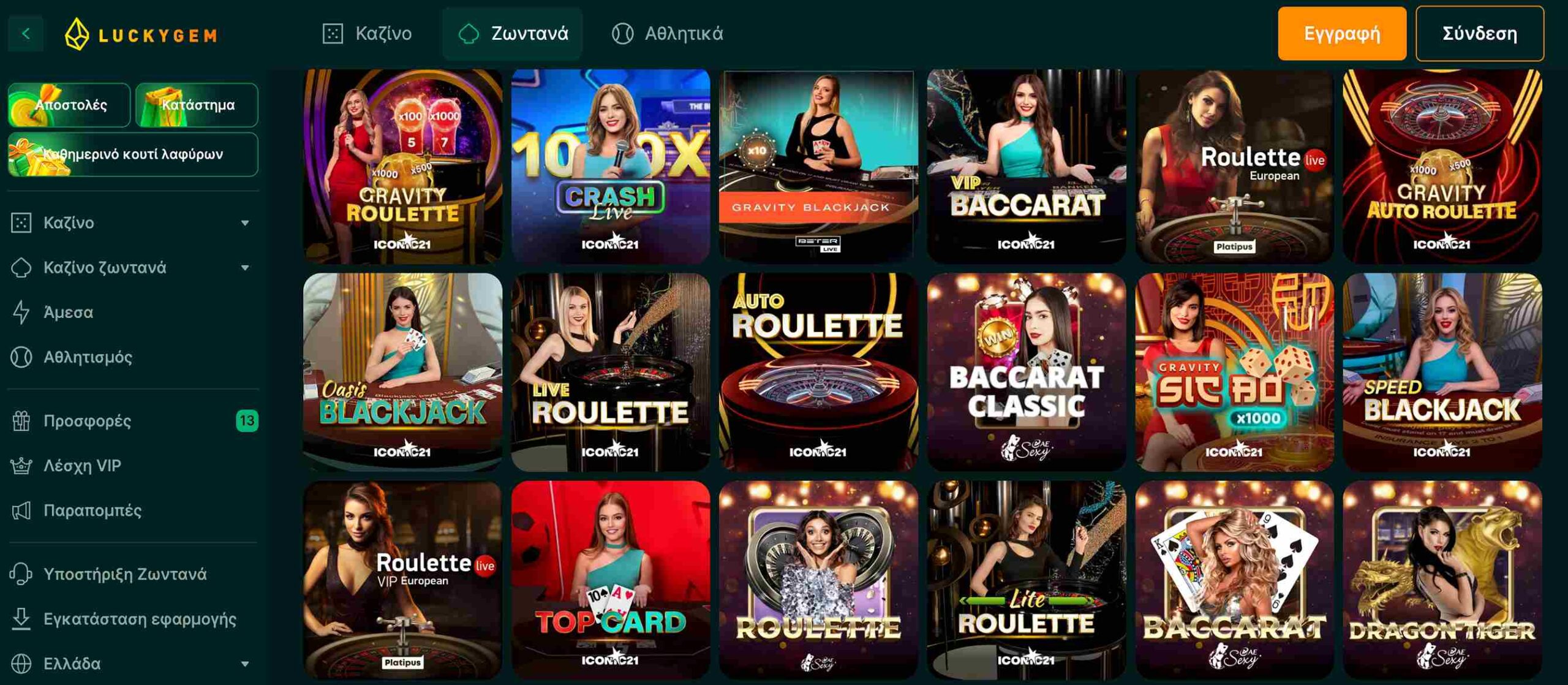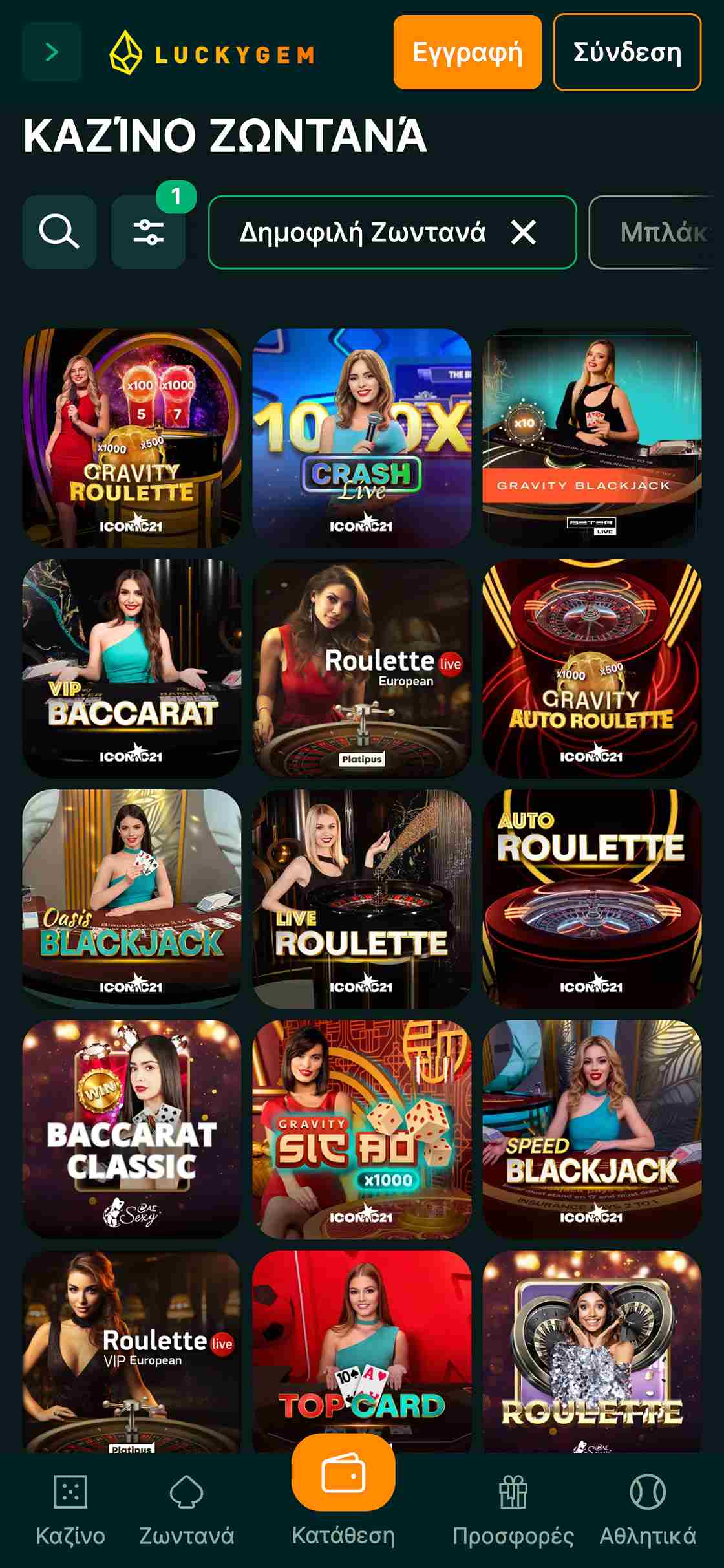 | Live Ρουλέτα | 25+ | Iconic 21, Pragmatic Live, AE Sexy, Absolute Live Gaming κ.α. |