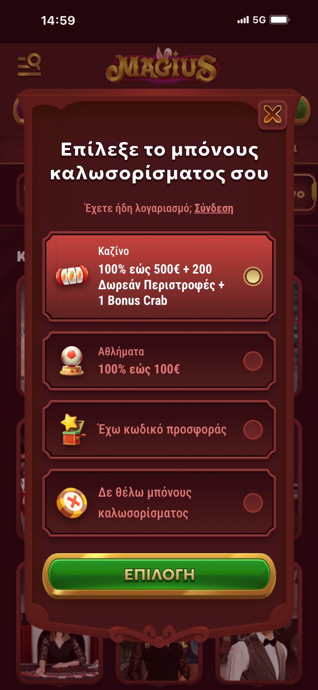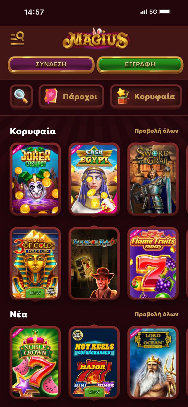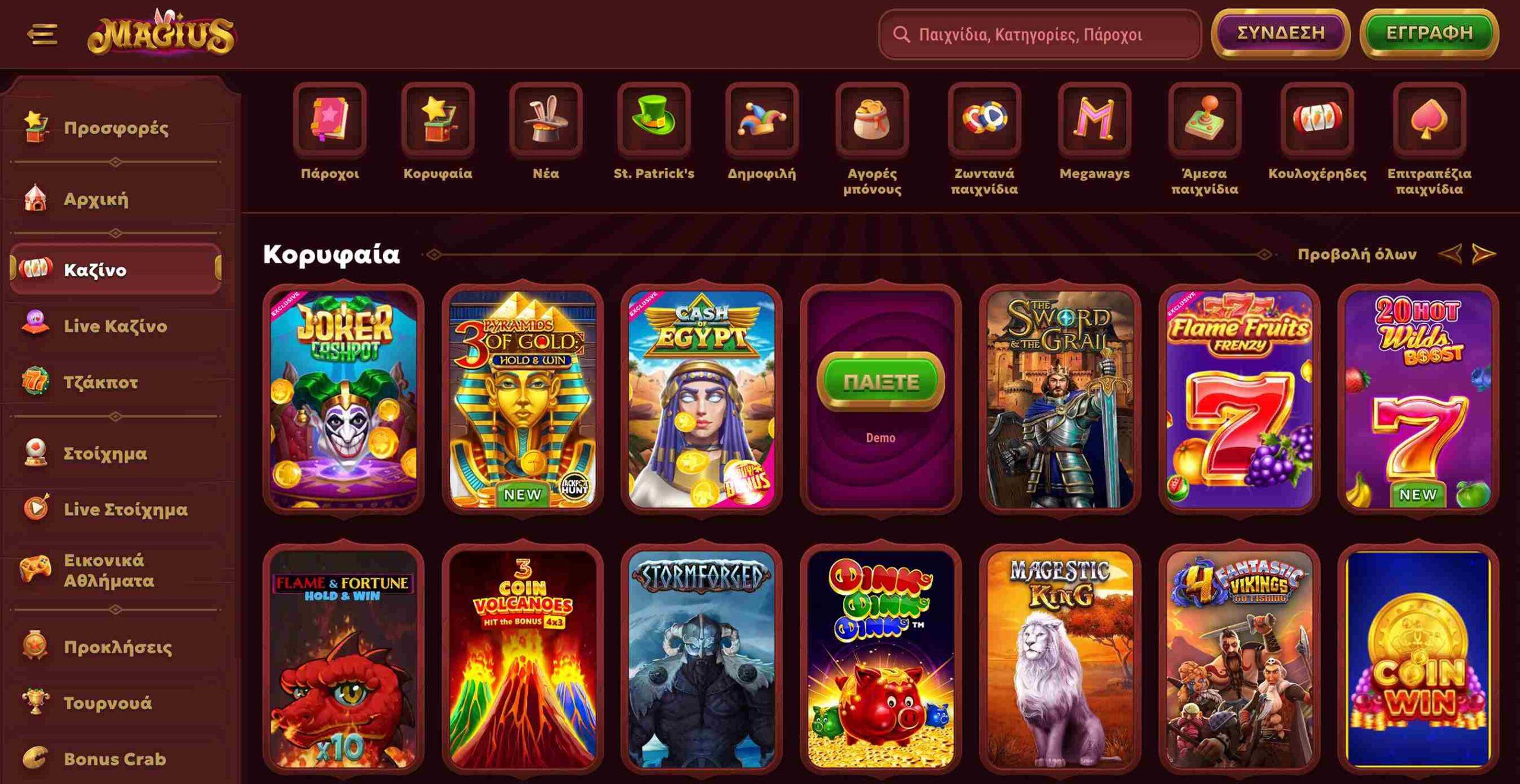 Κουλοχέρηδες: Θα βρείτε μια τεράστια συλλογή με τα αγαπημένα φρουτάκια και θα απολαύσετε παιχνίδια με υψηλό RTP, υψηλή μεταβλητότητα και υψηλό payout. Έχει περισσότερους από 7.500 διαφορετικούς τίτλους και πάρα πολύ μεγάλη ποικιλία σε θέματα, γραμμές πληρωμής κλπ. Μερικά από τα δημοφιλέστερα slots που μπορείτε να παίξετε στο Magius είναι:
