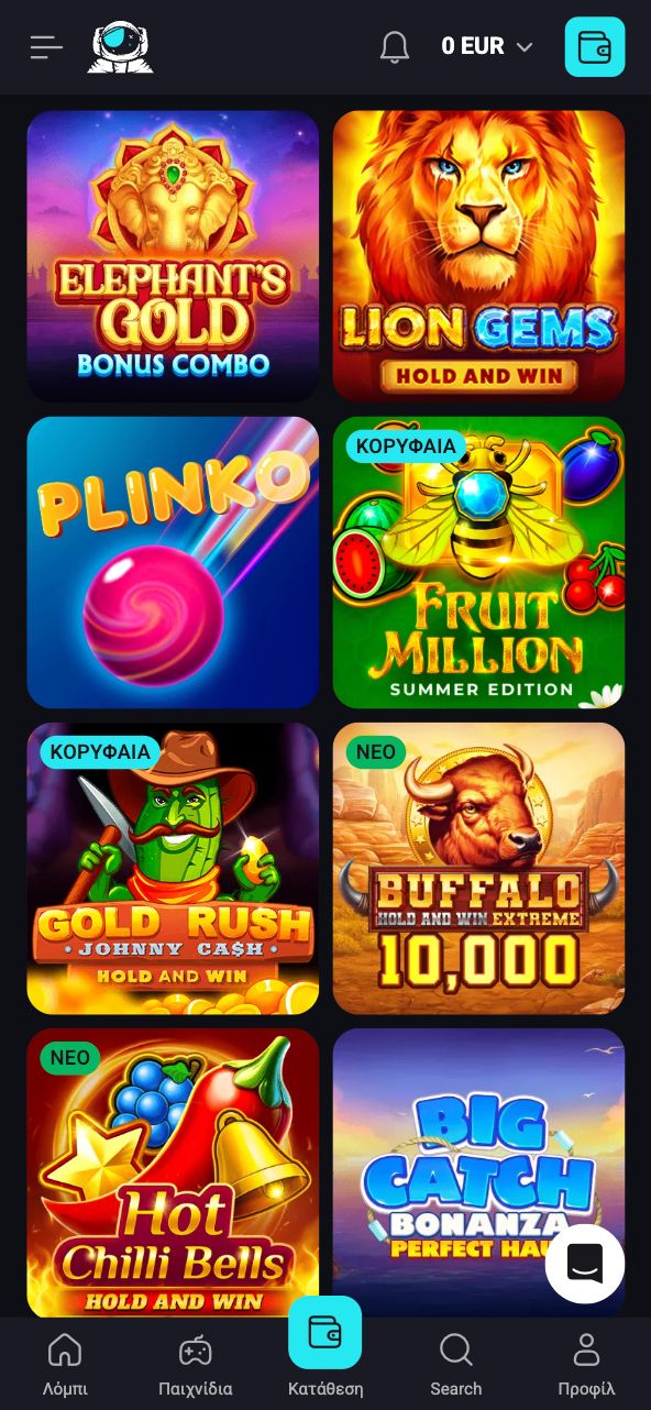 Μπορείτε να επιλέξετε παιχνίδια ανά κατηγορία, ανά πάροχο όπως και μπορείτε να επιλέξετε το λόμπι και από εκεί και πέρα να περιηγηθείτε στους διάφορους τίτλους. Κάτι που μας έκανε εντύπωση είναι το ότι υπάρχει Lucky Randomiser, που σας προτείνει παιχνίδια σε περίπτωση που δεν ξέρετε τι να πρωτοδιαλέξετε!