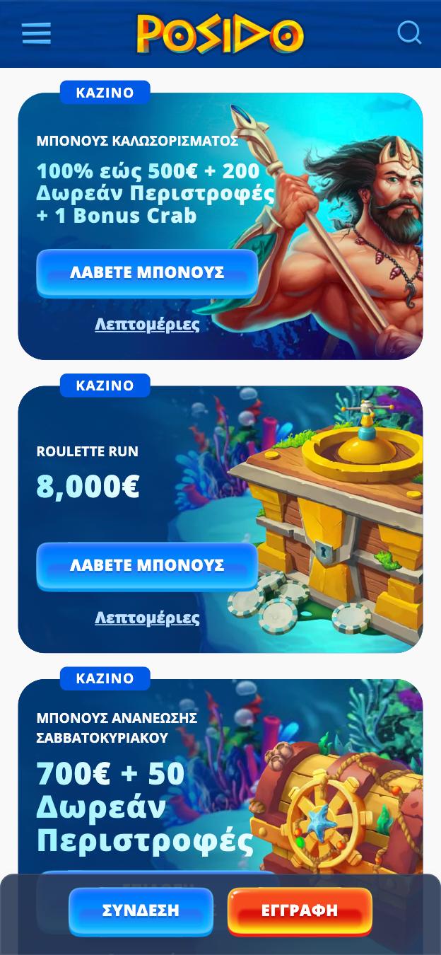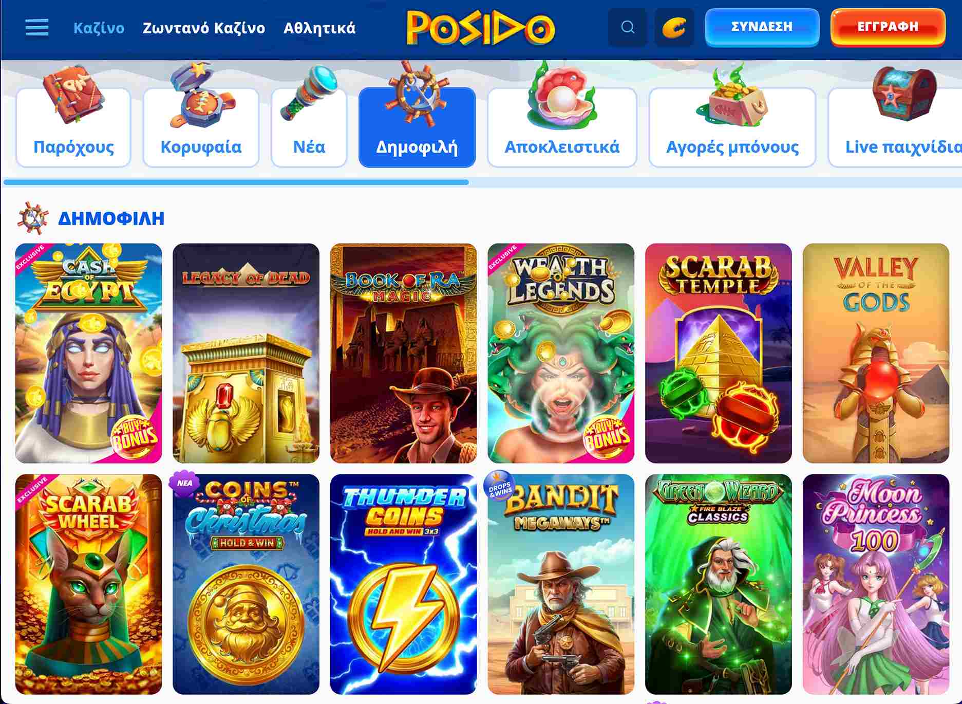 Συμπερασματικά, το καζίνο της Posido είναι εντυπωσιακό και σχεδιασμένο με τρόπο που εξυπηρετεί την ευκολία πλοήγησης διατηρώντας ταυτόχρονα υπέροχα εικαστικά στοιχεία και γρήγορους χρόνους φόρτωσης.