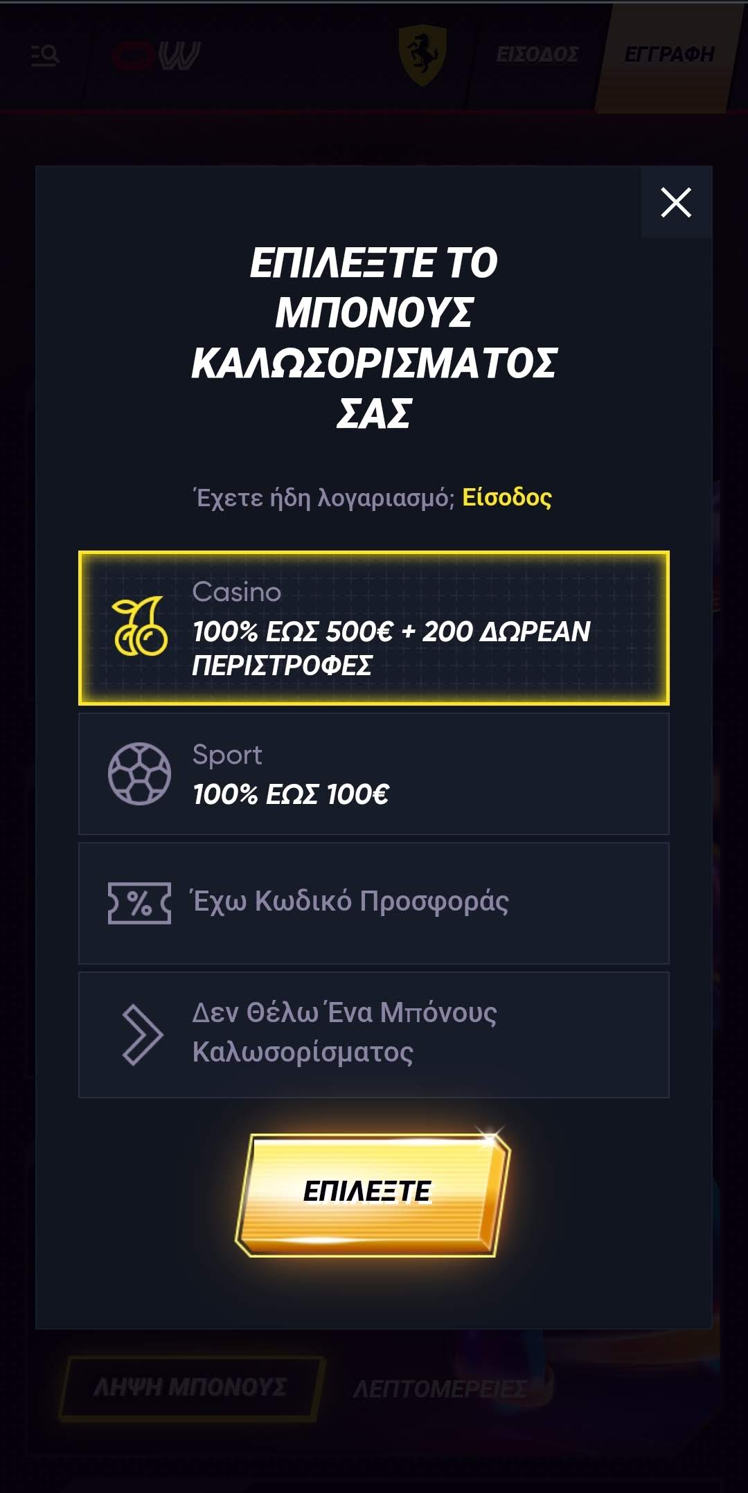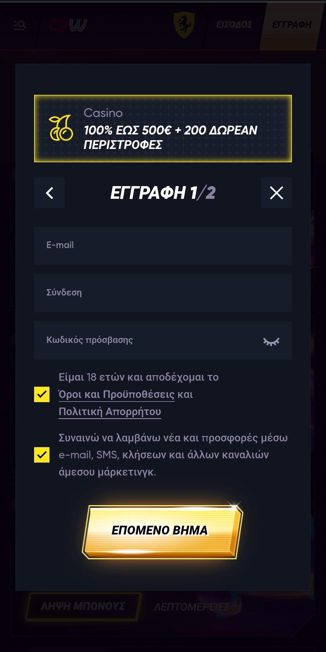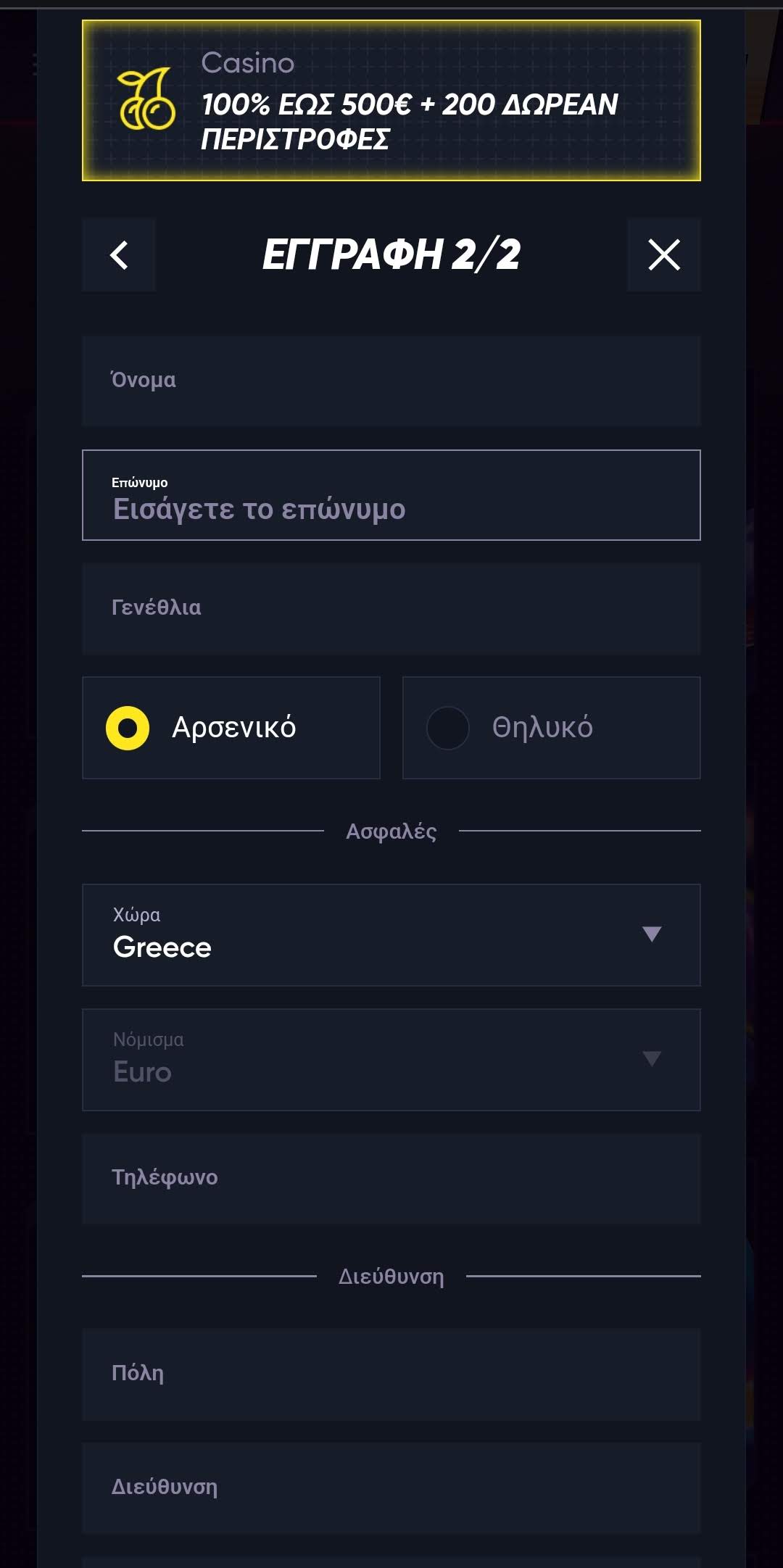 ✓ Δημιουργία λογαριασμού στο καζίνο και κατάθεση τουλάχιστον 20€ (εξαιρούνται καταθέσεις με Skrill ή Neteller)