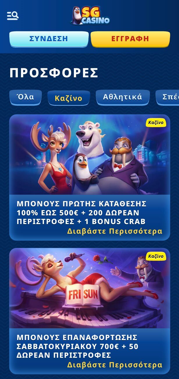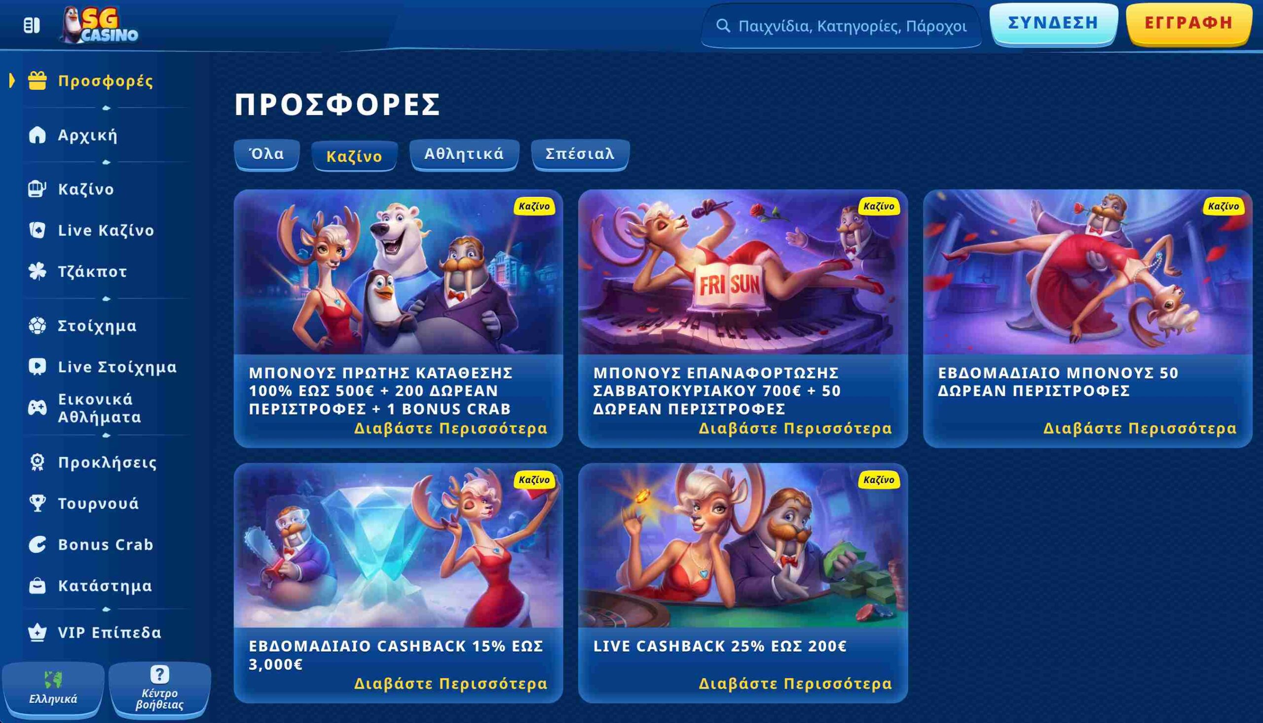 Διαβάστε την πιο ολοκληρωμένη αξιολόγηση του SG Casino και πάρτε μια γεύση από την πλατφόρμα που προσφέρει χιλιάδες παιχνίδια και μοναδικές εμπειρίες.