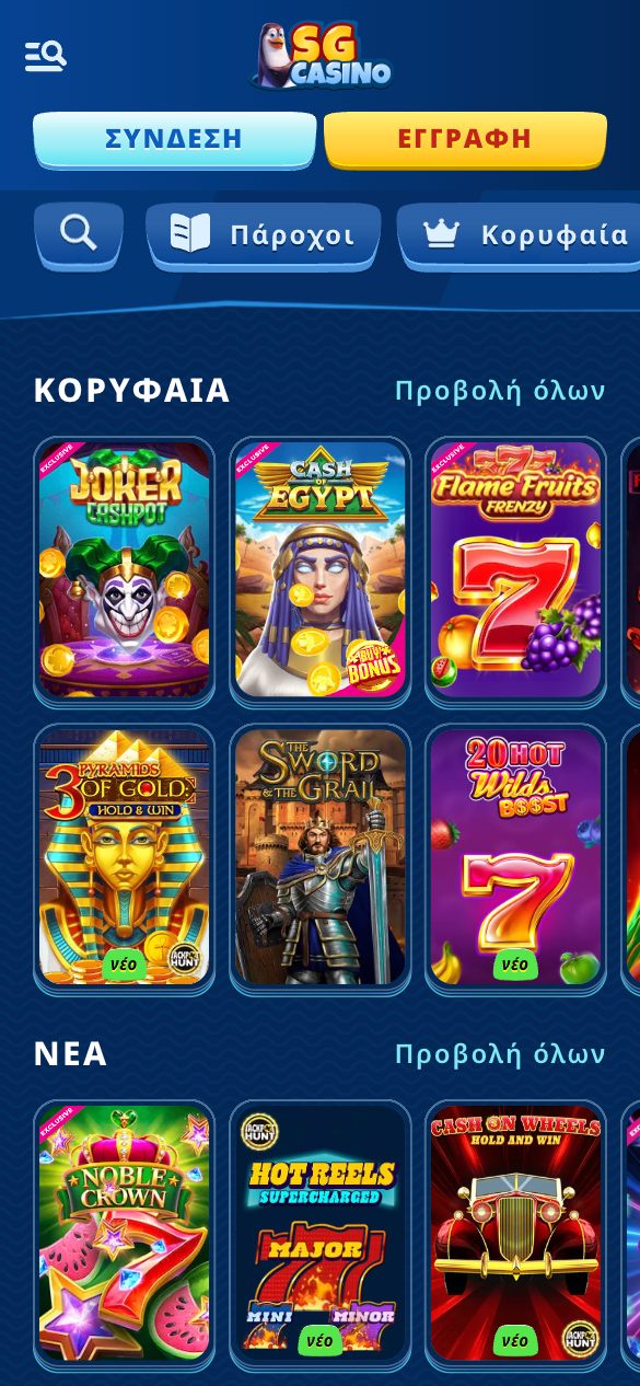 Με πάνω από 4.000 διαφορετικά παιχνίδια, την εγγύηση της Rabidi NV και την εμπειρία στον χώρο, το SG Casino αποτελεί μια καλή και ασφαλή, πάνω από όλα, επιλογή για τους παίκτες. Η πλατφόρμα δημιουργήθηκε το 2023, προσφέροντας μεγάλη ποικιλία σε παιχνίδια και live dealer τραπέζια και αυτό που την κάνει να ξεχωρίζει είναι το πλούσιο πακέτο προσφορών και μπόνους για τους παίκτες.