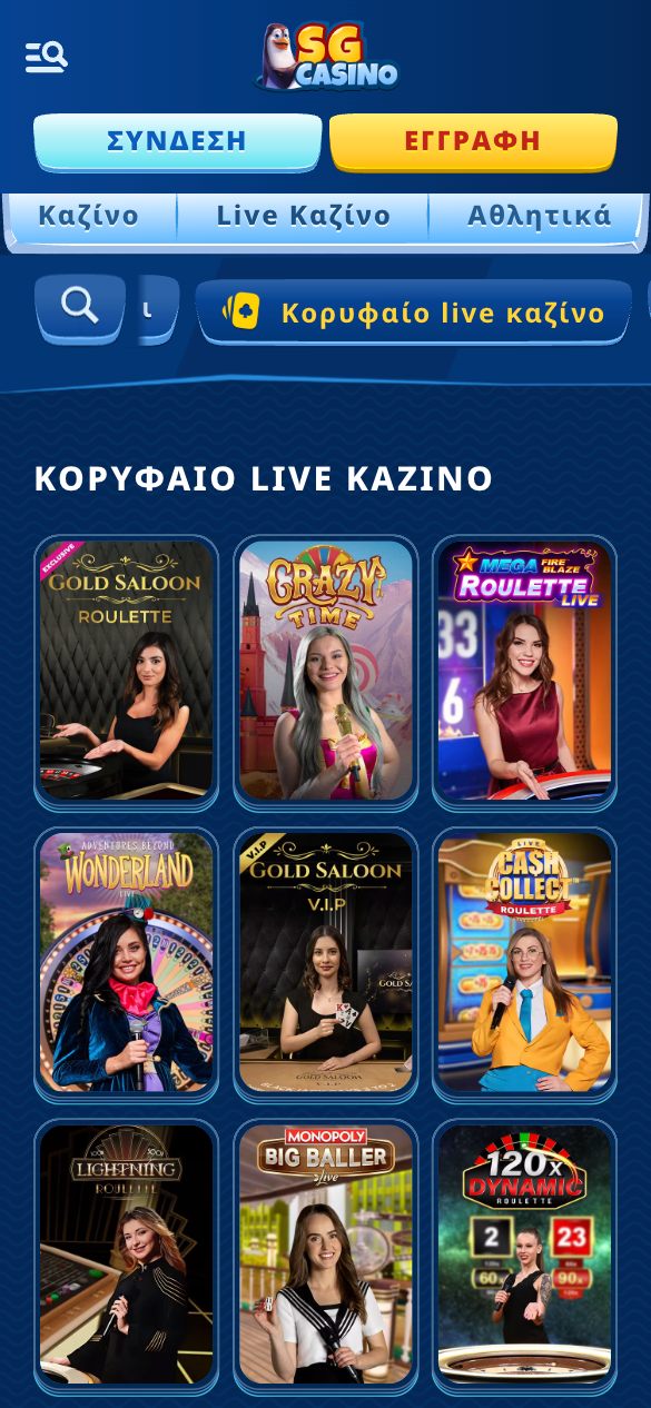 Στο Live section του SG Casino θα βρείτε πάνω από 370 ζωντανά παιχνίδια, που σας περιμένουν για να απογειώσετε την εμπειρία σας. Με dealers που είναι επαγγελματίες και ένα περιβάλλον που σας κάνει να νιώθετε σαν να είστε σε ένα πραγματικό καζίνο, τα Live τραπέζια της πλατφόρμας είναι στα μεγάλα ατού της