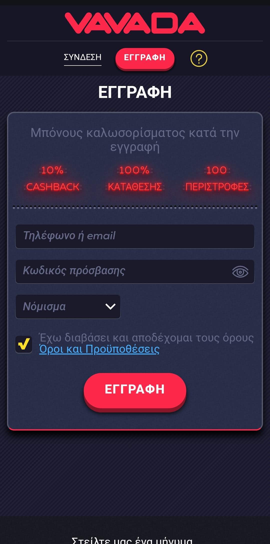 Το μπόνους εγγραφής στο καζίνο Vavada είναι ένα πολύ ελκυστικό καλωσόρισμα με 100% του ποσού της πρώτης κατάθεσης, έως 1.000 ευρώ και 100 δωρεάν περιστροφές. Μαζί με αυτά, κάθε νέος παίκτης έχει και 10% cashback, το οποίο υπολογίζεται στο τέλος κάθε μήνα και ουσιαστικά επιστρέφει το 10% των απωλειών που σημειώνει.