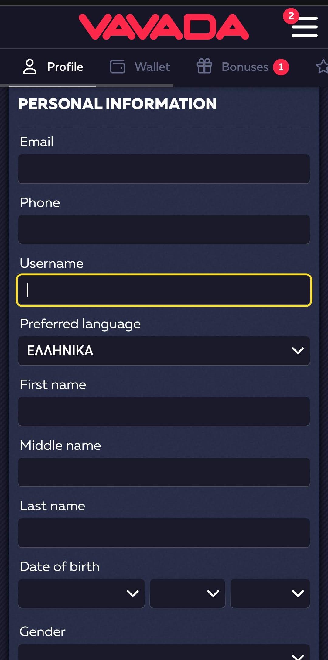 Όταν κάνετε εγγραφή, παρουσιάζεται ένα έξτρα υπομενού στο πάνω μέρος της σελίδας, όπου διαχειρίζεστε το προφίλ σας, τα μπόνους σας, το πορτοφόλι σας και τα μηνύματά σας.