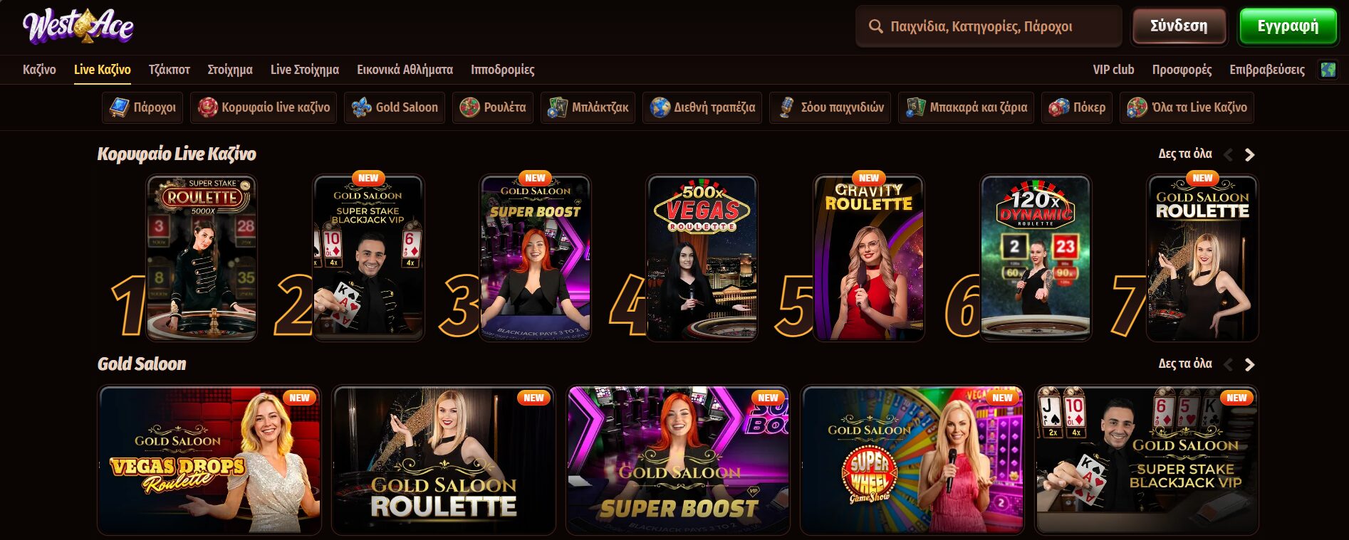 Από την πρώτη επίσκεψη είναι εμφανές ότι το WestAce αποτελεί μια πλήρη ξένη πλατφόρμα για τυχερά παιχνίδια. Οι χρήστες έχουν πρόσβαση σε μια τεράστια γκάμα από κουλοχέρηδες και ζωντανά τραπέζια. Ωστόσο, δεν υπάρχει ανησυχία να «χαθούν» μέσα στον υπερβολικό όγκο πληροφορίας, καθώς τα φίλτρα και οι λειτουργίες αναζήτησης συμβάλλουν αισθητά στη γρήγορη εύρεση συγκεκριμένων τίτλων.