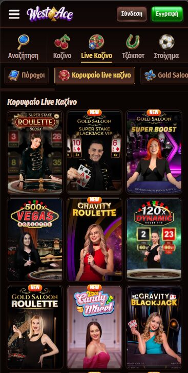 Το WestAce Casino δεν περιορίζεται στους κουλοχέρηδες και σε λοιπά RNG παιχνίδια, καθώς διαθέτει περισσότερα από 200 ζωντανά τραπέζια. Εδώ ξεχωρίζουν διάφοροι γνωστοί πάροχοι όπως Stakelogic, Iconic 21, Softgate, BetGamesTV, Lucky Streak, SA Gaming και Vivo Gaming.