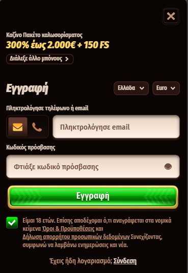 - 1η κατάθεση: 100% έως 1.000€ + 50 δωρεάν περιστροφές