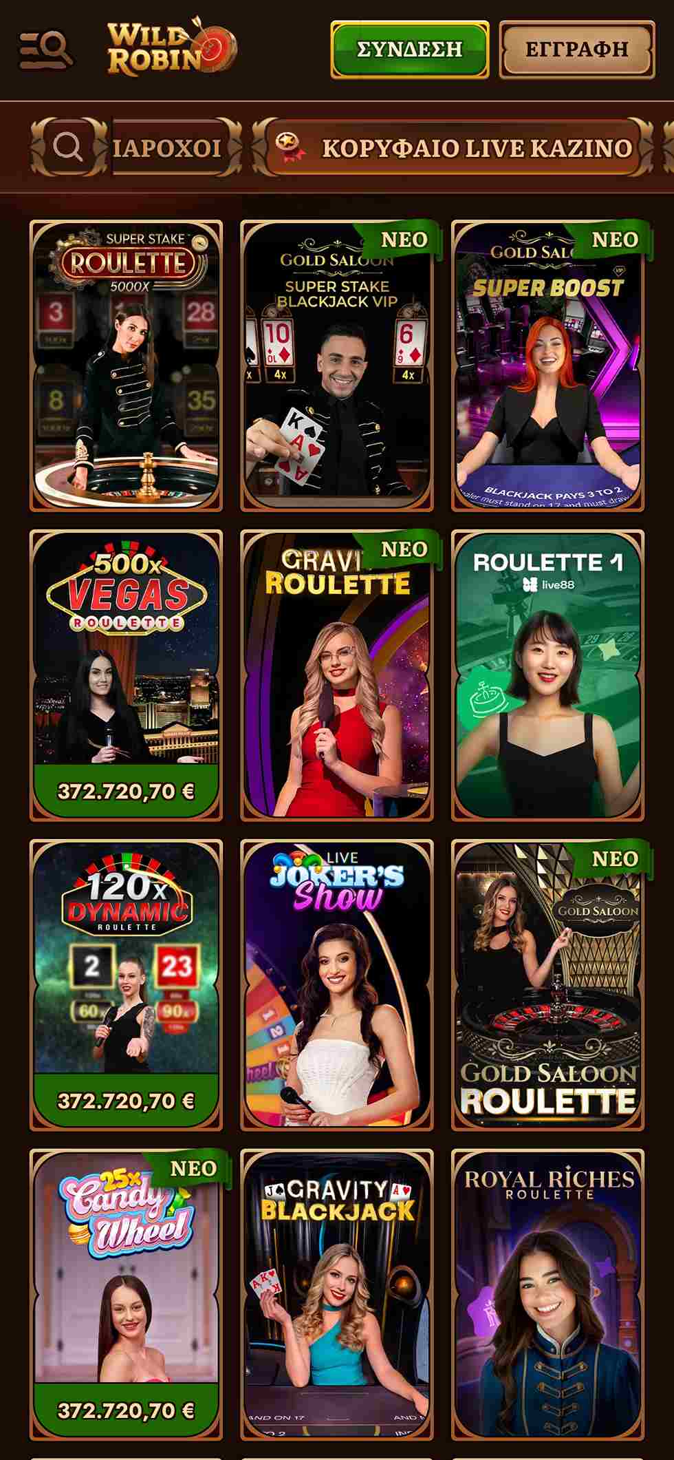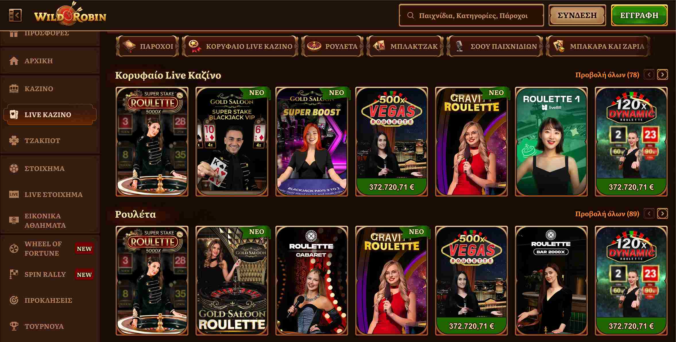 Στην ενότητα ζωντανού καζίνο στο Wild Robin θα βρείτε όλες τις δημοφιλείς επιλογές σε επιτραπέζια παιχνίδια απέναντι σε πραγματικούς κρουπιέρηδες.