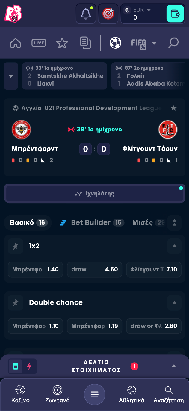 Στα συν θα βάλουμε το ότι προσφέρεται και bet builder στο live, που είναι αρκετά ενδιαφέρον, με καλές επιλογές και αρκετή ποικιλία. Στα πλην θα βάλουμε την απουσία ζωντανής ροής – το live streaming είναι διαθέσιμο μόνο για κάποια eSports – που είναι μια αρκετά σημαντική έλλειψη στο ζωντανό στοιχηματισμό.