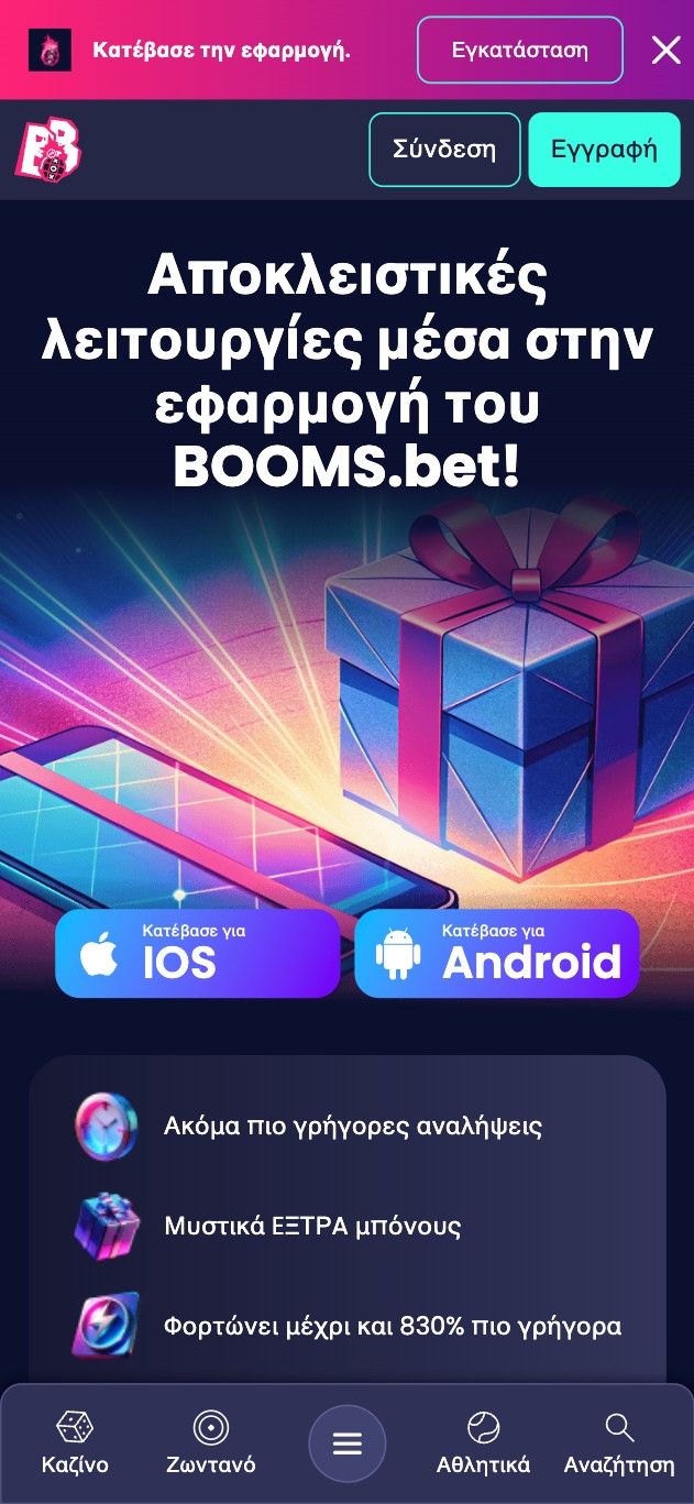 Στη Booms.bet θα βρείτε ειδική εφαρμογή για κινητά για να κατεβάσετε, που σημαίνει ότι θα υπάρχει βέλτιστη λειτουργία της πλατφόρμας για τη συσκευή σας. Είτε έχετε Android κινητό, είτε έχετε iPhone, μπορείτε απλώς να πάτε στον ιστότοπο και να κάνετε download του app.